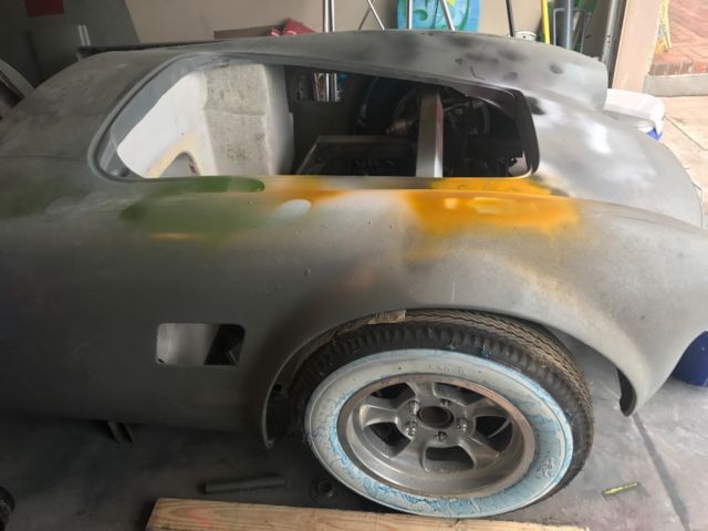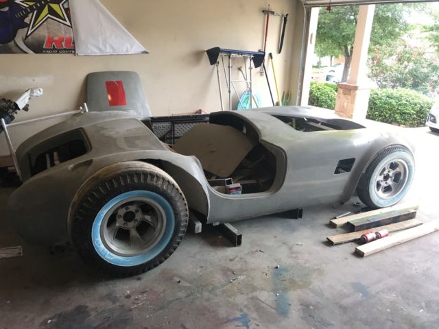 1966 Shelby Cobra Fiberglass Kit CarMFG of body unknownVery well made body with doors, hood, deck lid, Hinges (powder coated)95' Corvette suspensionCustom 2x3 rectangle steel frame, front and rear sub frame tacked in for final adjustments depending on motirvsndvtrans selection. Main frame welded and ground smooth. Chrome steering column with steering wheelNew white wall slicks and front runners and aluminum wheels.Currently setup to be retro gasser. With different wheels you could go a traditional look.Over $12k in parts. Great start to a fun car.We will help load.Bill of Sale given with car. This is a kit car. Never on road. We have pieces trimmed from rear wheel opening that can be used to fill as needed. Reserve set at $5000. Well below value.