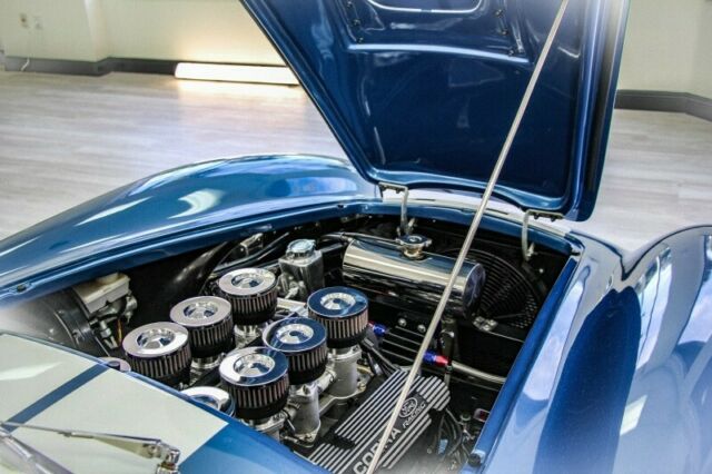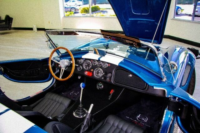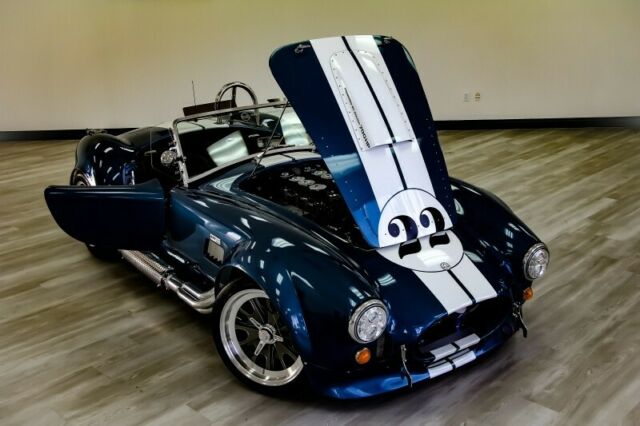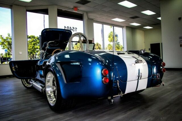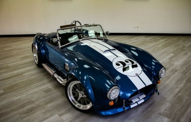 Auto Café of Florida is proud to bring to you this hand crafted replica of the infamous 1965 Shelby Cobra Roadster RT3B produced in late 2018 by Backdraft Racing. This American roadster comes equipped with a V8 that captured every car lover's heart in 1965. It combines the historic looks of the original with modern performance resulting in a stunning recreation that maintains legendary visuals while offering industry leading comfort and safety. Through continuous improvement and refinement the Backdraft Roadster... has reached the top of its class for price versus performance and features.Under the hood you'll find a robust Roush 427IR Stroker V-8 engine with 560 HP and a Tremec TKO 600 transmission. Each IR series engine is hot tested, then dyno tested to verify power. Internally, the iron 4-bolt small-block engine features a roller camshaft, hydraulic lifters, H-beam rods, forged pistons and a steel crank. This serious powerplant is fitted with aluminum CNC-ported heads, a big Holley 4-barrel carburetor on an aluminum intake manifold, MSD ignition, polished serpentine components and coolant overflow tank, front-mounted radiator with electric fan, Quicktime bellhousing and Roush valve covers and air cleaner. A Tremec TKO600 5-speed manual transmission feeds the power to the rear end and lends a real race car feel with the reliability and movement of modern design and engineering. The suspension encompasses a set of BMW 3-Series front coilovers and an adjustable independent rear setup.Roush Performance Engineering was founded in 1976 and boasts more than 40 years of experience in all types of racing and engine building. Jack Roush has the most wins in NASCAR history and was inducted into the Automotive Hall of Fame in 2017. In addition to the racing team and vehicle modification services, Roush operates a successful crate engine and high-performance parts supply business that helps customers realize their building aspirations.Get your dream car with the highest quality components from the most respected names in the industry: Roush Performance + Backdraft Racing.Call our team of Shelby Cobra experts at 877-855-0935 to make your dream become a reality. We are the only Shelby Cobra dealer in South Florida.Don't see what you're looking for? Our team will customize the perfect Shelby Cobra for you with all of your favorite features.SPECS1965 BACKDRAFT MOTORSPORT ROADSTER RT3BHandcrafted by Backdraft Racing in Guardsman Blue With Wimbeldon White Racing StripesIn addition to the abundance of standard options offered by Backdraft Motorsports, the following upgrades make it a step above its peers. - Audio system - 4 speaker, amp with remote - Chrome fire extinguisher- Soft Top Car Cover for Interior- Glove box- Heater- Fuel pressure & Tranny oil temp gauges- Seat belts - Cam lock style- GT body option- Power Steering- Paint protection - Complete (front & rear fenders)- Raydot mirror - driver- Raydot mirror - passenger- Soft top - black vinyl- 18" Knock-off wheels- Race hooks, front & rear in red with sticker- Limited slip differential 3:73- Powder coated brake calipers - red- Swop valve covers to Cobra- Oil cooler - red fittings & stainless lines- Ceramic headers and sidepipes- Front spoiler, painted & fitted- Front fans- 427 side badges- Nose & deck badges- Rondels- Shift Knob - blue- Front tag bracket- Knock-off wheel wire kit- Under dash power point- LED lights- Roush 427 IR engine- Tremec TKO600 transmission (5 speed)- Transferable 2 year/24,000 mile warranty on engine + 1 year on chassis* Please note the #22 has been recently removed since photographs were taken.