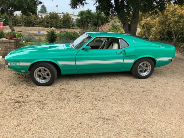 RARE COLOR ORIGINAL FACTORY GRABBER GREEN 1969 SHELBY GT 500 C6 AUTO TRANSMISSION WITH ORIGINAL WHITE INTERIOR. I HAVE THE MARTI REPORT. NEEDS A NEW HEATER CORE. I HAD THE DRIVETRAIN REBUILT, ALL NEW EXHAUST, NEW GAS TANK AND FUEL SENDING UNIT, TIRES, BATTERY, STARTER, HIGH FLOW WATER PUMP, REBUILT OEM BRAKE BOOSTER, REBUILT OEM ALTERNATOR, OEM GLASS ALL AROUND, OEM REAR WINDOW LOUVERS, NEW CARPET, MASTER CYLINDER, NEW KONI SHOCKS, PETRONIX IGNITION AND NEW HOLLEY CARB FOR RELIABILITY. ORIGINAL FLAWLESS HEADLINER AND ORIGINAL SEAT COVERS . I WELCOME INSPECTIONS. NUMBERS MATCHING CAR. BUYING AS IS. I RESERVE TO END THE AUCTION EARLY. NO TRADES. ANY QUESTIONS 805-220-8419 OR johnpersoon35@gmail.com.
