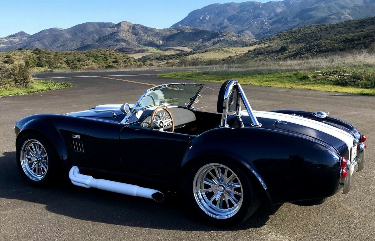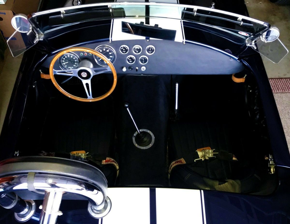 Factory Five Racing MK II Cobra professionally built in 2002 by Dave’s Performance in Temecula, CA. using all new parts (no donor parts). Painted Navy Blue with Wimbledon White stripes by Jeff Miller. Owned and maintained by a professional auto technician. a 351 Windsor/385 HP SVO long block with aluminum heads, X303 roller cam, Ford roller rockers, MSD Pro-Billet ready-to-run ignition distributer, Holley 650 cfm double pumper carb w/ electric choke on an Edelbrock Performer RPM manifold, Centerforce clutch, steel billet flywheel, Tremec WC T5 transmission. Chassis is silver/grey powder coated. Tubular front upper & lower control arms, T-Bird SC IRS in rear w/ tubular LCAs, & FMS aluminum center section. Flaming river manual rack and pinion. True knock-off 17" polished aluminum Halibrand replica wheels (245/45 R 17 BF Goodrich g-Force SportComp 2 in front& 275/40 R 17 g-Force T/A Drag Radial out back) using Trigo pin-drive adapters. 4-wheel disc brakes. 4 into 4 headers and side pipes jet hot coated in white. Original style seats and all wool carpet, fully carpeted trunk. Chrome roll bar with Cobra Earl's safety headrest. Wind wings, sun visors, & brushed aluminum external mirrors. All reasonable offers will be reviewed.For any questions or private showing, leave a message for Mike @ 805-341-2918. Additional information and specs: â¦Chrome over-riders, front and rear â¦Stewart Warner gauges – 5 inch speedometer and tach â¦Thunderbird Super Coupe IRS and FMS aluminum center section â¦Hood hinges are powder coated â¦Chrome roll bar â¦Centerforce dual-friction clutch on SFI billet steel flywheel â¦Energy engine mounts â¦Paint color is Sherwin Williams Navy Blue Metallic – GM color WA352 â¦Ford SVO 351W crate motor (PN: M-6007-A351) â¦Flat top pistons â¦Ford roller cam X grind; .542" lift/286 duration â¦Cloyes true roller chain â¦Ford SVO aluminum heads â¦SVO Competition cam springs â¦Ford roller rockers â¦March aluminum performance pulleys â¦Edelbrock Performer RPM manifold â¦Holley 4777s carburetor 650 CFM 4V w/ electric choke â¦All oil and fuel lines are braided steel with A&N fittings â¦MSD Pro-Billet ready-to-run distributor â¦SFI billet steel flywheel â¦SVO Harmonic balancer â¦Milidon Road Race 8 qt oil pan â¦High volume oil pump with HD drive â¦Cobra valve covers and air cleaner |