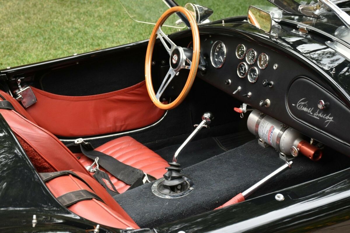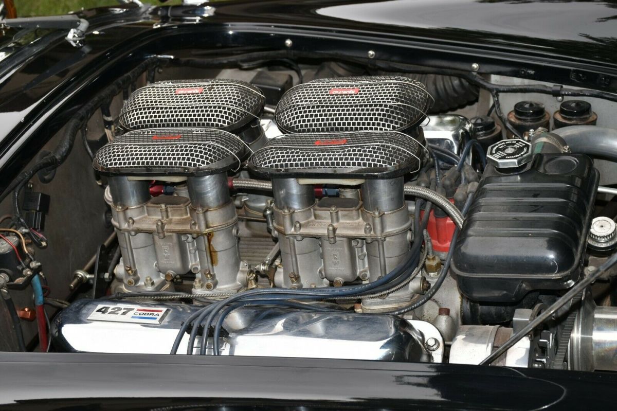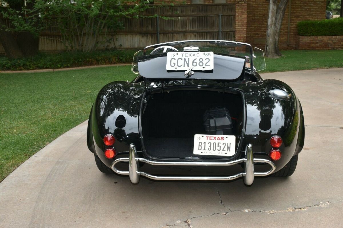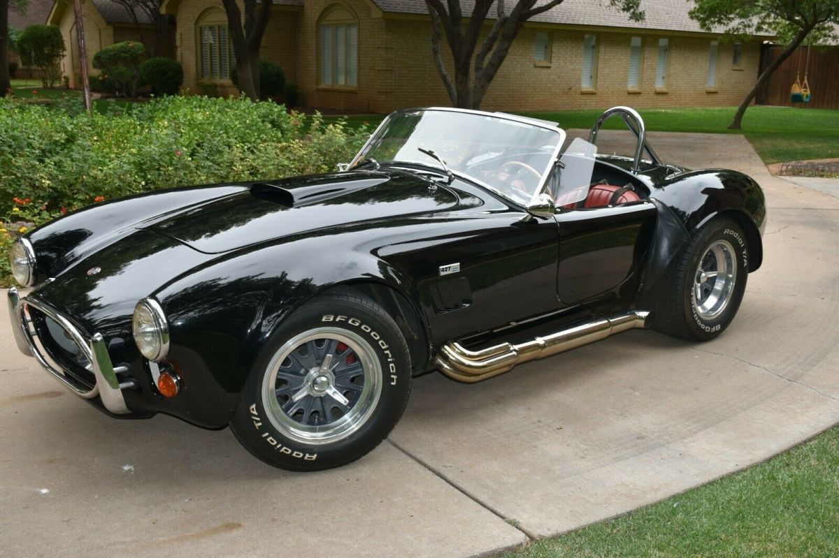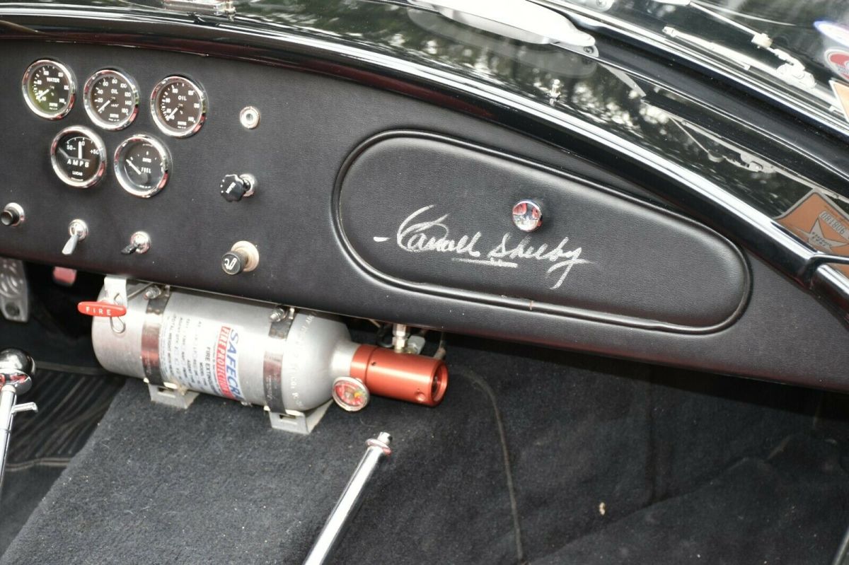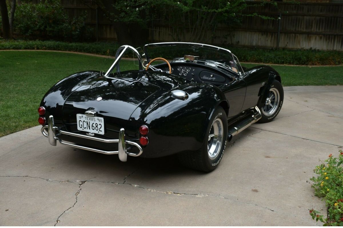 This is a very accurate car. The original build was in 1984. In 1993, the 2nd owner was lucky enough to find a brand new old service (N.O.S.) 427 block still in its original factory shipping crate. In 1994, the engine was shipped to Ronnie Sox Racing and had the compression lowered to 10.9 from 12.5 to run pump gas. The pistons were then ceramic coated by the company that does all the NASCAR engines...rebalanced.. and reassembled. He then installed a Richmond 5 speed, scatter bell housing, fire extinguisher an the complete accurate pin drive wheel system. In 1998 h replaced the roller rocket system with a newly developed one used for racing, polished the turkey pan and fixed a faulty oil temperature gauge (then the only maintenance done other than fluids). I has the original Jag suspension with 3:75 limited s lip.The car is low mileage showing 5,375mi. & has Won at least "3 Best Of Shows". The paint is original black urethane & the leather is original. The rev limiter is under the dash and is set at 6,000 rpm. The tires are new. This Cobra drives straight as an arrow. I have a set of original old world Goodyear tires (non-dot) that are good to mount for car shows. It sports original Lucas head lights and Lucas/ Smith gauges. The auxiliary fans are on a switch on the dash & are used in hot weather which holds the temperatures in check.Most people mistake this car for an original. I sent the manifold & Weber carbs tp Comp Cam in England, Tenn. where they went completely through the carbs, polished & ported the manifold, installed new braided fuel lines & perfectly adjusted the linkage. It rns unbelievably strong & looks great! I would not recommend this car for an inexperienced driver.The car is well documented & will be missed. I have the original build sheet from ERA. It is extremely well built. Most receipts have been saved. The car is signed by Carol Shelby. It is listed in Texas as an antique. There is a license plate assigned to this car.