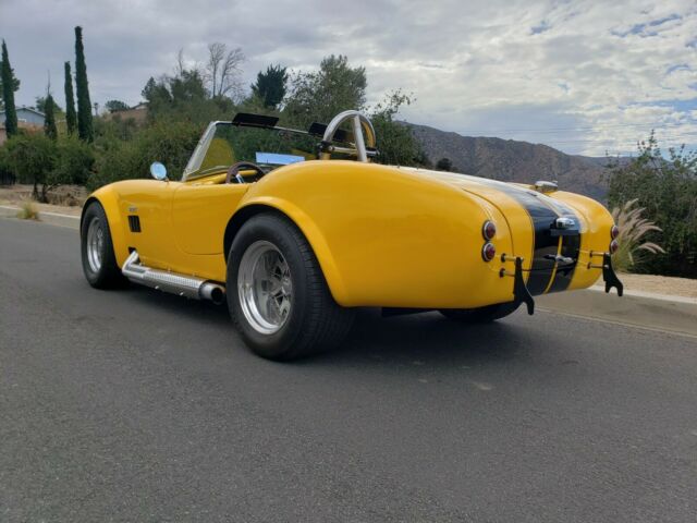 This Antique & Collectable Shelby Cobra replica was built in 2007 by it's original owner Craig Thompson who is a retired US Navy ship builder at Newport News VA ship yard. This particular Cobra was his number 9 built and he successfully sold all of them on to other collectors like myself. This monster is powered by a custom Windsor 351 (375 HP) V8 mated to a five-speed Borg-Warner T-5 manual gearbox. Car is finished in Yellow gelcoat paint with black stripes and features side pipes, staggered Halibrand replica wheels, Edelbrock four-barrel carburetor 750 CFM, Summitt vacuum booster and power front & rear disc brakes, independent front suspension, 9" Ford positraction rear end with 4 link all on coil over shocks. Has leather racing seats with combination black suede leather and gray carpet interior. Maintenance carried out in 2020 included a tune up, new spark plugs & wires, new distributor cap, new fuel filter, fresh oil & filter, new side pipes with new headers, new carburetor and more. This roadster has 5,500 original miles and is offered in California with a clean California State title listing it as a 2020 Special Shelby. This has legal certified smog exempt California registration which means you will never ever need to smog this roadster. It was a very time consuming and tedious registration process which the next CA owner does not have to worry about. The cockpit features vintage racing-style bucket seats with four-point Simpson harnesses as well as a wood-rimmed steering wheel and a glovebox. The suede-wrapped dashboard houses VDO gauges for water temperature, oil pressure, fuel level, RPM, Speedometer, analog clock & battery voltage. I have all documentation from the original owner from day one and build sheet and all that. Also comes with various spare / extra parts as you can see in photos. It has custom made convertible top with side curtains/windows and a tonneau cover. Car runs and drives perfectly without any issues or overheating and I feel comfortable driving this roadster everywhere any time. I'm 6'1" about 240lbs and fit perfectly in this Cobra and it's a blast to drive. It gets a lot of attention and when I say a lot its an understatement. My buddies have McLarens and Lamborghinis and when we go out for cruising I get the most attention and thumbs up. When I take it to the local weekend car shows I always get people gather around with a smile on their faces asking me all kinds of questions. I hate to part with this beauty but circumstances force me to and it's time for it's future owner to enjoy this baby.