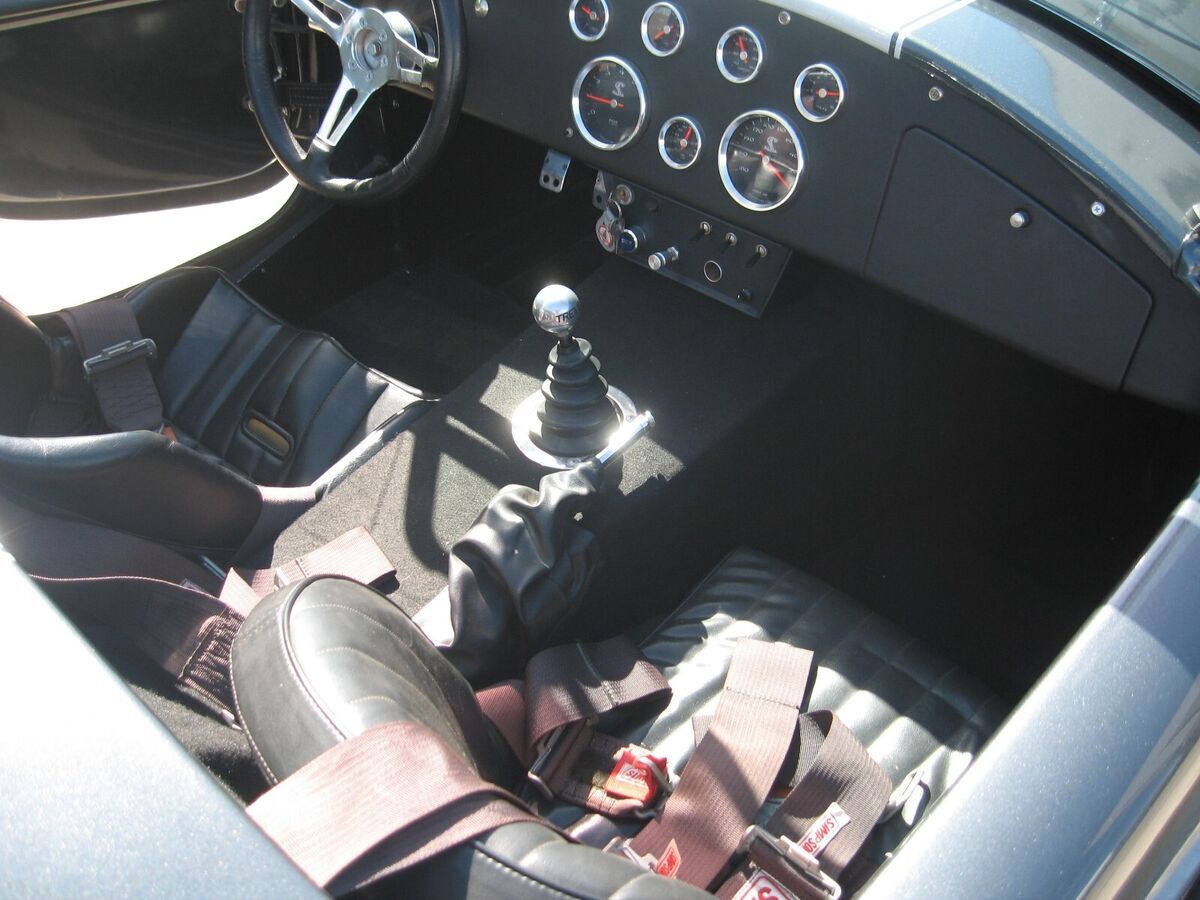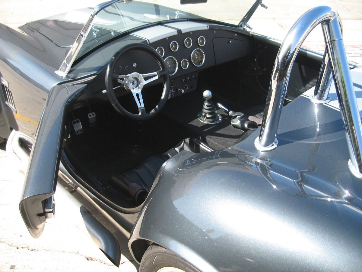I'm selling this beautiful Factory Five AC Cobra for a good friend who has decided he wants to do other things. This car is dark green/gray with silver stripes. It has a black interior with custom cobra gauges. The 351 Lightening engine is rebuilt with a roller cam, aftermarket RHS aluminum heads, Edelbrock aluminum intake, F.A.S.T. fuel injection and headers. This car has plenty of power and is fun/easy to drive. It has a Tremec 5 speed, independent rear suspension, disc brakes with a hydro boost system, 17-inch Factory Five simulated knockoff rims, power steering and custom QA 1/Bilsteen shocks. This car was built for a 6'3" 280lbs man. The footwell area has been enlarged for more room and a custom driver seat was added. A factory style seat will also come with the car. I'm 5'9'' 210lbs and fit the car easily. This is the first Cobra kit I could drive with boots on. Finally, an AC Cobra that a bigger guy can fit in and drive in comfort!