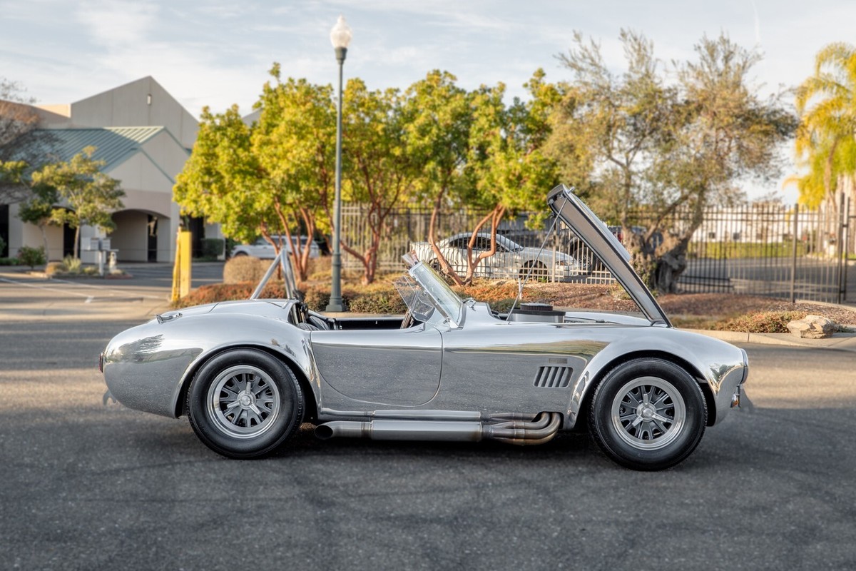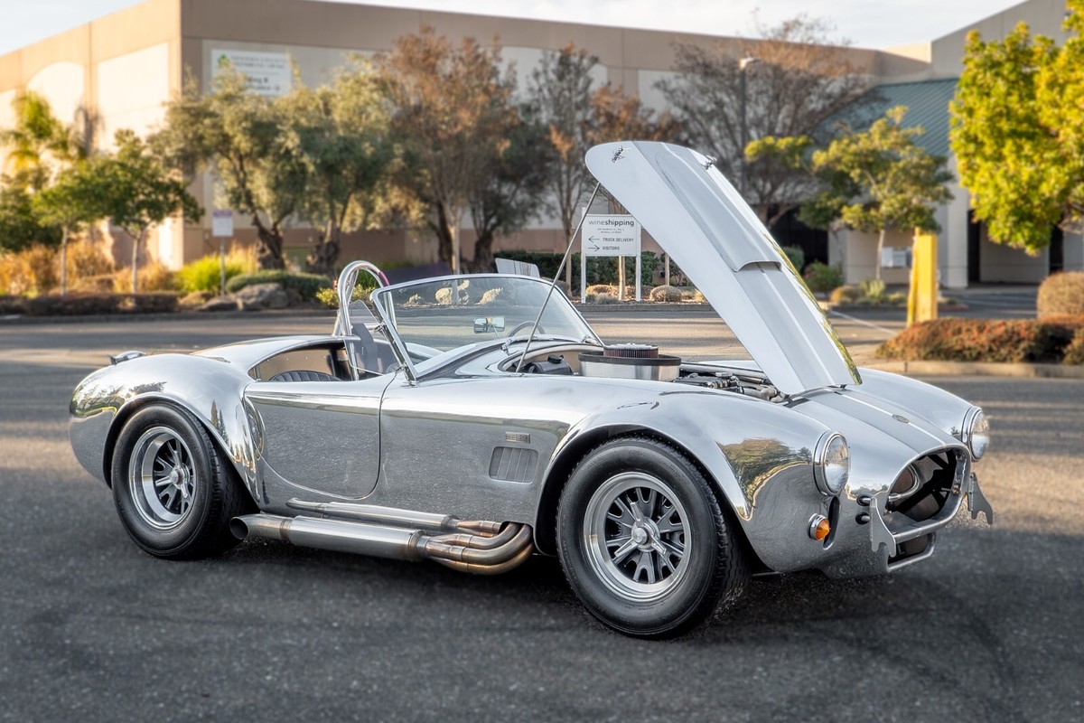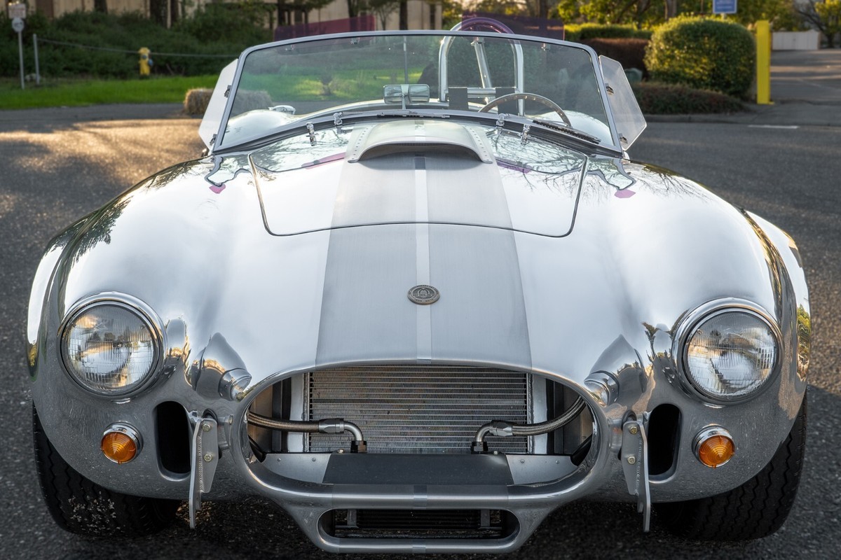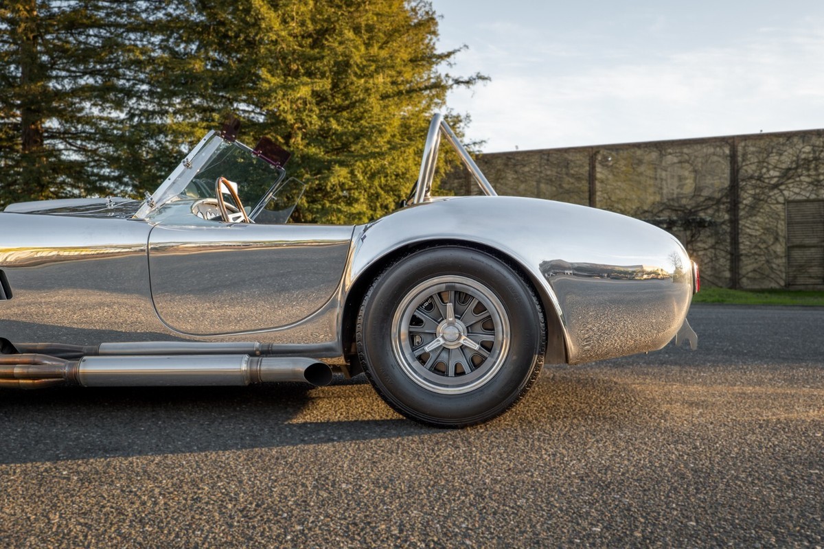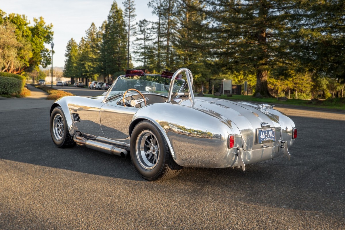 In the late 1990s, Carroll Shelby launched the CSX 4000 series, intended as a continuation of his own Cobra 427 model of the 1960s. In many ways it was the same as the original, but it incorporated numerous technical advancements in assembly processes and materials learned over the last half century—including a reinforced steel chassis, the use of better alloys, improved engine cooling, and more insulation for the passenger compartment, suiting the needs of modern drivers. Examples had varying bodywork and drivetrain configurations depending upon the whims of their original owners. Shelby celebrated the 427’s 50th anniversary with an equal number of special CSX 4000 cars, numbered between CSX 4550 and CSX 4599. Each featured a powder-coated frame, custom gauges, and an interior outfitted with more premium materials, and was equipped with unique badging and logos throughout. The Cobra 427 S/C 50th Anniversary Edition offered here was the 17th built and was very desirably specified with Kirkham’s beautifully finished bare polished aluminum body with brushed stripes, as well as a leather interior, heater/defroster, 15-inch wood steering wheel, and Shelby gauges. It was set up with transmission mounts for a Tremec five-speed transmission, the standard 3.54:1 rear differential, steel side exhaust and headers, Shelby coil-over suspension and Shelby Wilwood racing brakes, rack-and-pinion steering, 28-gallon fuel tank, and original-style aluminum 15-inch wheels with winged knock-offs. The Carroll Shelby Engine Company then supplied an aluminum 427 FE engine,displacing 468cubic inches, capable of producing 550horsepower at 5,800 rpm and 580pound-feet of torque at 4,200 rpm. Presented in excellent overall condition with scarcely any use, having recorded just 379 actual miles at the time of cataloguing, this utterly stunning Cobra boasts extraordinary performance and muscular beauty. Carroll Shelby would have had it no other way. |