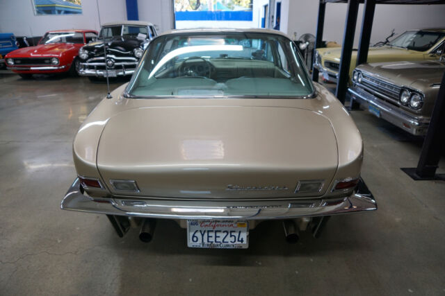 888-778-3751888-778-3751 Visit eBay Store 123456789101112131415161718192021222324252627282930313233343536373839404142434445464748495051525354555657585960616263646566676869707172737475767778798081828384858687888990919293949596979899of99 Full size photos Full size photos 83349 Miles 289/289HP SUPERCHARGED V8 Manual2 Door Hardtop Coupe Stock #: 1454 Exterior Color: Gold Interior Color: Other Color Body Type: 2 Door Hardtop Coupe Transmission: Manual Engine: 289/289HP SUPERCHARGED V8 Title Condition: Clear West Coast Classics are proud to present an absolutely exceptional example of this mostly all original and stock 1963 Studebaker Avanti R2 Supercharged 289/289HP 4BBL V8 2 door Coupe with 9:1 compression ratio in its original 'Avanti Gold' factory color paint and boasting it's extraordinarily rare and desirable factory 4 speed manual transmission and original matching #'s engine and factory options including power steering, power front disc brakes, AM Pushbutton radio, electric clock, heater and defroster and original 289 V8 Supercharged R2 Super Jet Thrust engine! Reportedly one of less than 500 in total factory 4 spd Supercharged R2's ever built between the 1963-64 production years! The R2 would set several land speed records for factory stock vehicles, eventually breaking 29 speed records between 1963-64, to become the "World's fastest production car." These records remained on the books for many years. Top speed was almost 169 miles per hour. This particular example was purchased from only it's second owner, a retired airline pilot who lived in Newport Beach, California in 2005 (who had previously purchased the car from it's original owner in 2001), in all original condition including the paint and interior and with 82,951 original miles on it's original matching #'s engine and with no history of any accidents or damage, by only its third owner who also lived in southern California and who since has restored the car mechanically as required over the years with no expense spared and only using original restored or NOS parts and including an engine rebuild and one professional repaint in it's original 'Avanti Gold' color. The most often overlooked true performance car of the 1960s is the original 1963-64 Studebaker Avanti. This is an odd phenomenon, seeing as the Avanti was more expensive than a Corvette when new, built in limited numbers and was one of the fastest and most innovative cars of the time. Andy Granatelli helped break 29 speed records at Bonneville with factory Paxton-supercharged Avantis, which he proved could run 170 MPH in "stock" form, and 200 MPH when more heavily modified. Rodger Ward, winner of the 1962 Indianapolis 500, received a Studebaker Avanti as part of his prize package "thus becoming the first private owner of an Avanti." A Studebaker Lark convertible was the Indianapolis pace car that year and the Avanti was named the honorary pace car. This particular example came factory equipped and remains to this day as follows: Original matching $'s 289/289HP R2 engine rebored to 302 c.i. Original Paxton centrifugal supercharger Original Borg Warner T10 4-speed manual transmission Original 3.73:1 Twin-Traction rear end Power steering Power disc brakes AM radio Excellent original body with perfect 'hog troughs' One repaint in its correct Avanti Gold color Fawn interior Fitted with four custom made replica Bonneville Salt Flat High Speed spinner wheels with 'Firestone Firehawk Indy 500' tires as were on the original Indy 500 Avanti R2 Pace car for the 1962 race. The Gold color and wheels are correct for this period when the Avanti R2 broke and held the speed record for stock cars on the Bonneville Salt Flats in 1962-63 and also for the 1962 Indy Honorary Pace Car. The original steel wheels and hubcaps are included 1 of 1,883 total supercharged R2 models produced in 1963 and 1964 1 of fewer than 500 total factory 4-Speed R2 Avantis The 1963 Avanti was the first American production car to have factory disc brakes The Avanti was promoted as America's Most Advanced Car and was more expensive than a Corvette when new Supercharged Avantis set 29 speed records at Bonneville when new This R2 is all that was promised from South Bend in 1963 and more, beyond it having all of the right bits, its life in bone-dry climates proved very forgiving so those famous "hog troughs" which today look as good as the day they were installed in South Bend. The car has been completely gone through from end to end over the years to make it mechanically sound, rebuilding the original matching #'s engine and reboring it to 302 c.i. as a result of an .060 overbore (13 c.i.) @ 83,012 miles (mileage currently reads 83,349), replaced exhaust manifolds with NOS, install new stainless steel exhaust system with Dynomax mufflers, installed new fuel and water pumps, oil pressure hoses with fittings, clean & overhaul carb, R&R supercharger & install new pulley belts & new bearings, idler arm adjustor, steering box & system replaced, bell housing stripped & cleaned, braking and fuel systems, service rear differential, new clutch coupler, pivot arm & linkage, rod out & repair radiator, new vibrations dampers, new valve cover gaskets, all new window, door & trunk seals, new battery and more to make it perform to this level of perfection. As a result, this R2s matching-numbers supercharged 289/290 HP R2 engine runs like a bear, and that rare T-10 4-speed competently sends all that boosted power to its Twin-Traction rear end with 3.73:1 gears. Combined with power steering and the aforementioned power disc brakes, it is really a fantastic car to enjoy with the added bonus of that Paxton blower soundtrack. The 1963-64 Studebaker Avanti was amongst the most daring of 1960's American cars, a modern masterpiece which still seems contemporary today! Built with modern safety features such as a built in roll bar, padded interior and door latches that became structural body members when closed! A supercharged 289 V8 made th