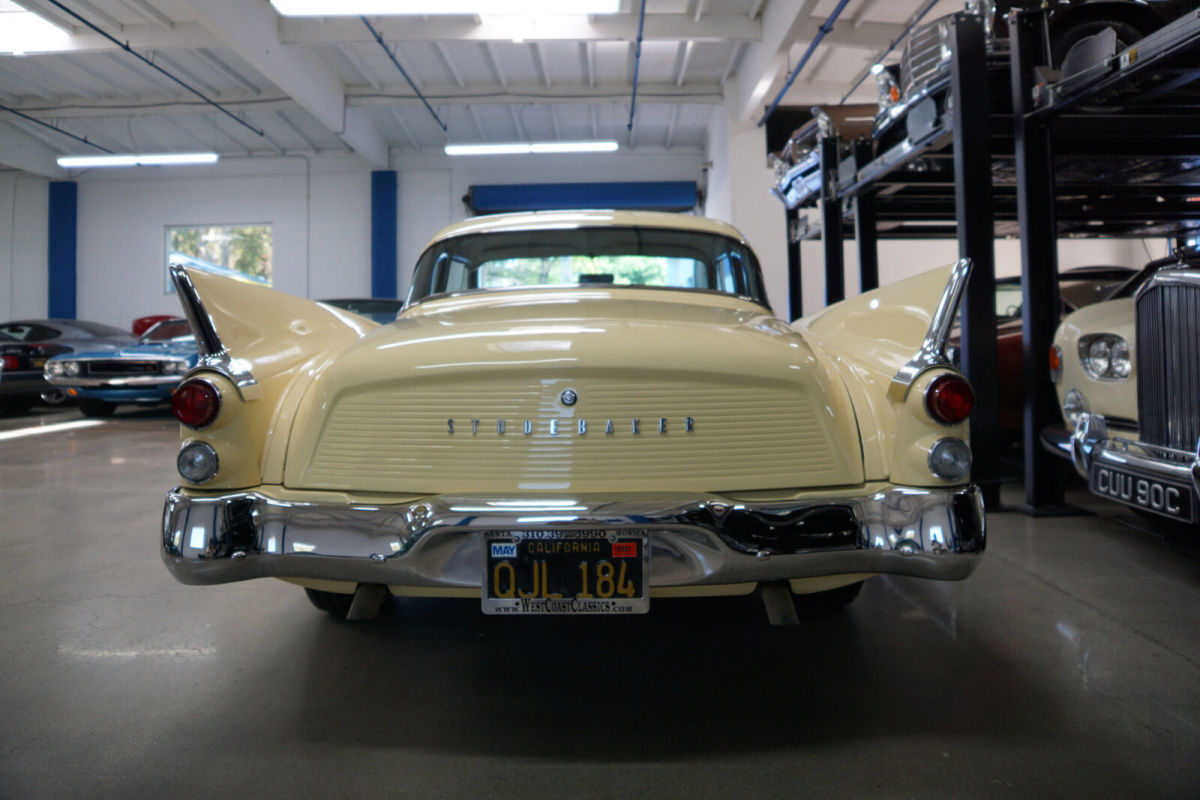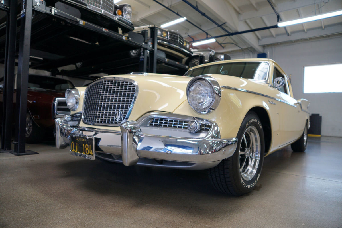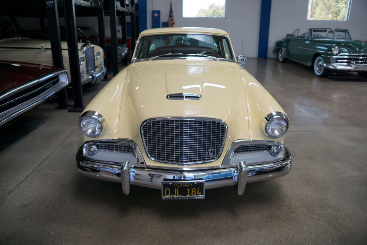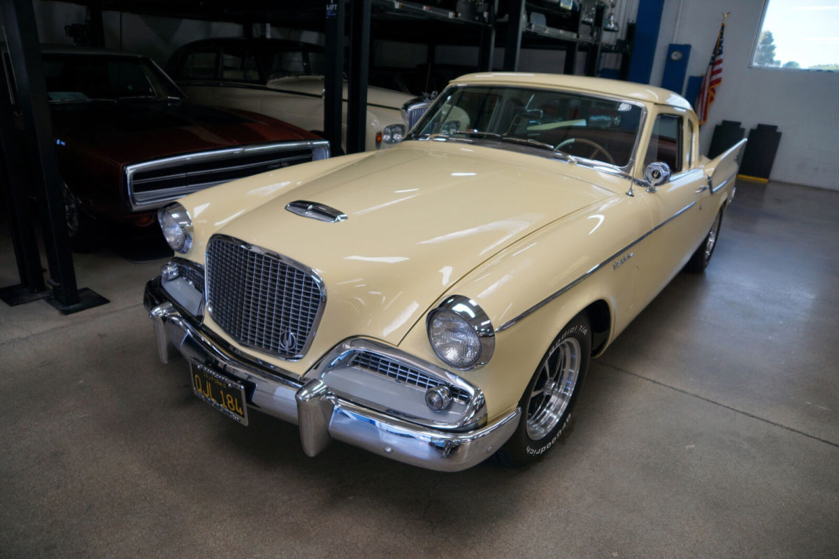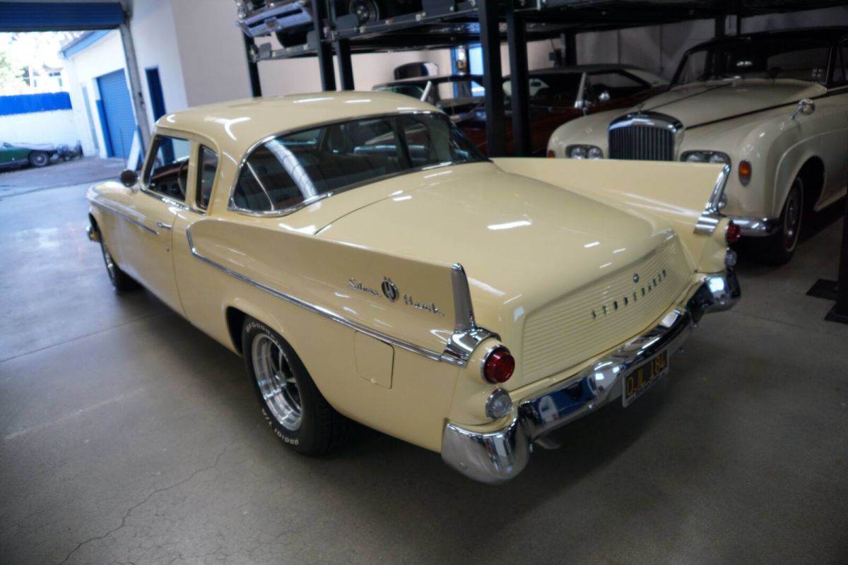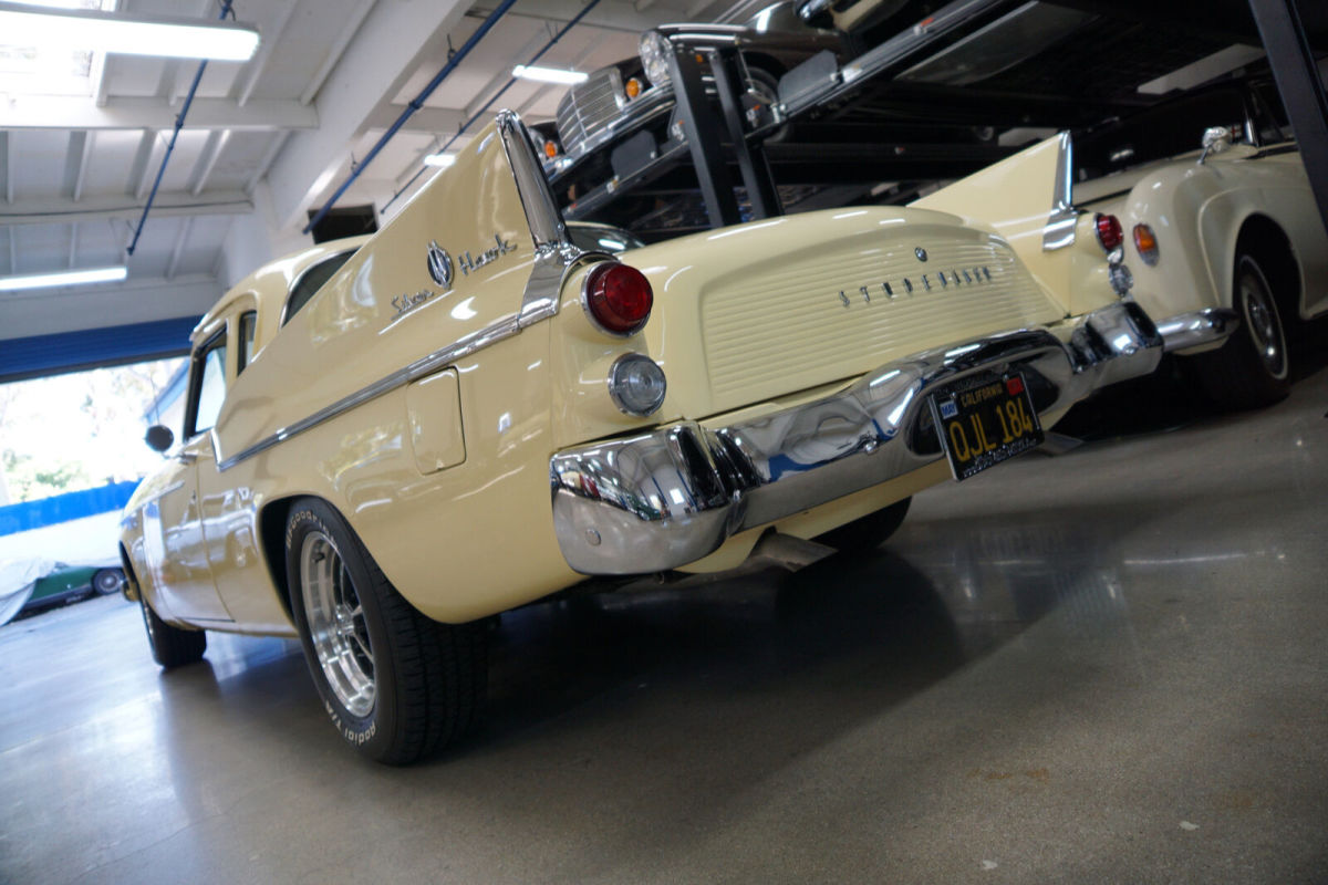 West Coast Classics are proud to present an extraordinarily well presented and no expense spared restored and mildly customized original southern California 1959 Studebaker Silver Hawk 350 V8 coupe with a custom build 350 Turbo automatic transmission with lock up torque convertor and power disc brakes matched to a built 350 V8 'Edelbrock' engine which recently underwent a complete ground up restoration and only 284 miles on the build and with a two-stage repaint in original factory 'Bamboo Yellow' color and with the interior restored in leather with a new headliner with chrome roof bows and with all the glass replaced and all the chrome re-plated. The floor boards, trunk and all the typical rust-prone areas are solid and rust-free. E-Street 350 V8 315HP/381TQ Edelbrock engine Custom 350 Turbo Trans with shift kit & torque convertor Dana 44 Differential Custom Built Driveshaft Front Disc Power Brake Conversion Custom 2" Exhaust System Custom Steering Column Electric Fuel Pump Custom Aluminum Radiator Electronic Ignition The car looks extremely impressive with a very striking 'Bamboo Yellow' factory color repaint with a striking custom leather interior also having been restored as required to similar factory specifications throughout with its original 'Studebaker' AM radio! The dashboard, the headliner with chrome bows and the carpets and the trunk have also been restored and are in as new condition throughout and the car has all new chrome! The car boasts a new crated E-Street 350 V8 engine prepared exclusively by 'Edelbrock' and which is rated at 315HP. The car has an all new power-train with front power disc brakes, twin traction Dana rear end, 'Saginaw' power steering, a new cooling system, amongst many other modern upgrades with receipts totaling over $85K. The engine is obviously extremely strong and powerful and this particular car drives very well - must be driven to be fully appreciated - a truly remarkable daily driver that will give any modern day sports car a run for it's money! Reportedly the vehicle spent its whole life in the Torrance, southern California area and it underwent this no expense mild custom hot rod restoration in 2015. In addition to the cosmetic restoration, many upgraded mechanical and electrical components were replaced at the time of the restoration as documented by a thick file of receipts totaling over $85K. The car will also be sold with a copy of it's original build sheet from the 'Studebaker National Museum', original owners manuals, dealer brochures, handbooks & paint chip brochures etc. After the Ford Thunderbird had been restyled in the late fifties, the Studebaker Golden Hawk emerged as one of the most handsome two door coupes on the market in 1956 with performance to match its styling. The 1959 Studebaker Silver Hawk was a simplified successor to the Golden Hawk with cleaner styling and subtle yet distinctive era correct fins and all were fixed pillar coupes. In summary, this particular example is a beautifully custom restored with no expense spared example in a very striking factory color with both cosmetics and mechanics attended to without concern for cost and consequently in great daily driving and turn-key ready to enjoy today condition and a simply fabulous example of this increasingly desirable and collectible late fifties all American classic car - a 1959 Studebaker Silver Hawk hot rod ready to enjoy now! |