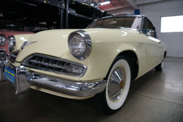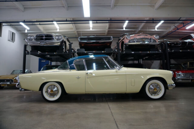 West Coast Classics are proud to present an extraordinarily well presented and great daily driving and beautifully restored as required example of this very striking top-of-the-line model for 1954 Studebaker Commander 2 Door Regal Starliner Hardtop 232 2BBL V8 coupe with an automatic transmission and power steering and which recently underwent a complete restoration with a two-stage repaint in the correct 'Ontario Blue over Safford Cream' factory color (P2521) paint with the interior restored to factory correct specs in 'Beige' leather with a new headliner with chrome roof bows and with all the glass replaced and all the chrome re-plated. The floor boards, trunk and all the typical rust-prone areas are solid and rust-free. The car looks extremely impressive with a very striking 'Ontario Blue over Safford Cream' repaint with the 'Tan' leather interior also having been restored as required in to original factory specifications throughout with its original 'Studebaker' AM radio, tinted glass, 3.54 axle ratio, & power steering! The dashboard, the headliner with chrome bows, the carpets and all the leather seats have been restored and are in exceptional condition throughout and the car has all new chrome! The car was originally built in Vernon, CA and has the original factory correct 232 V8 (#V302644) engine which is extremely strong and powerful and this particular car drives very well - must be driven to be fully appreciated - a truly remarkable daily driver that will give any modern day sports car a run for it's money! The car was recently freeway driven without any issues whatsoever from it's home in Palm Springs, CA to Torrance, CA, some 120+ miles. The car was ordered with rare leather upholstery option, power steering and the 'Starline' 6 tube radio, heater, windshield washer, electric clock, Hill-holder, hubcaps, full wheel covers, whitewall tires, deluxe steering wheel, front & rear armrests, dual sunvisors, automatic dome & courtesy lights, rear quarter panel stainless trim & full carpeting. The V8 version of the daring and legendary Raymond Loewy design, with sleek European styling matched by luxurious interiors and with a radical new design focused on a streamlined coupe to match Loewy's passion for a light weight and fuel efficient design which declared a "weight to be the enemy" approach, whilst the rest of Detroit was still focused on building much larger and heavier cars as was the fashion of the day. The Museum of Modern Art recognized the Loewy coupe at it's introduction as "one of the most beautiful automobiles ever", and later went as far as to describe the car as a "work of art". The car will also be sold with a copy of it's build sheet from the 'Studebaker National Museum', original owners manuals, shop manuals & paint chip brochures etc. In summary, this particular example is a beautifully restored example in a very striking two-tone color combination with both cosmetics and mechanics attended to in great daily driving and turn-key ready to enjoy today condition and a simply fabulous example of this increasingly desirable and collectible top-of-the-line and desirably optioned 1954 Studebaker Regal Commander Starliner 232 V8 2 Door hardtop! |