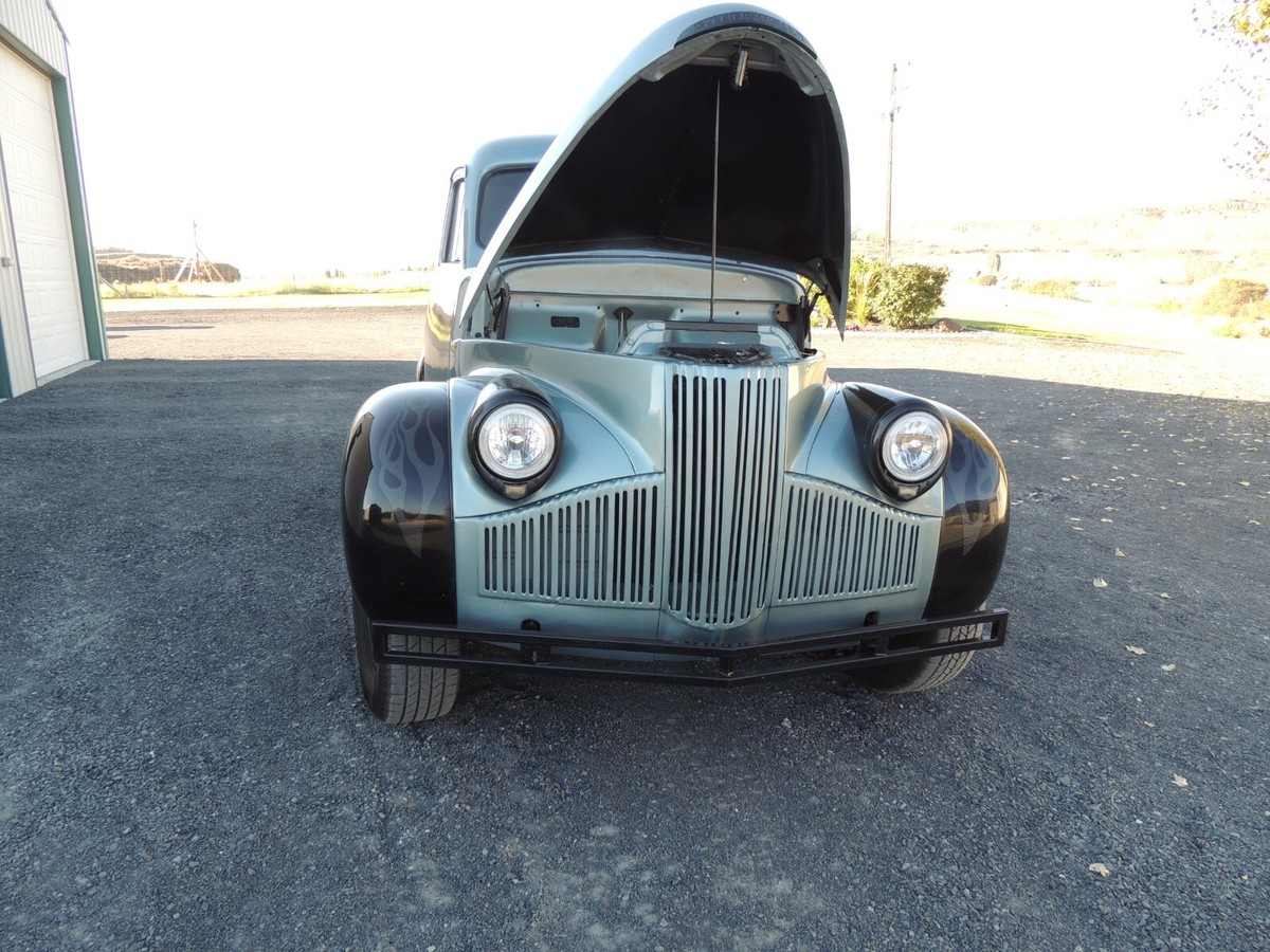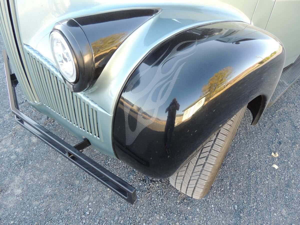 1948 Studebaker M5custom paint and carbon fiber flames4 wheel power disc brakes8' rear end with 4.10 gearssplit exhaustdual carb3 speed with O/D runs about 2400 RPM @ 60mphstock suspensionshaved door handlesblack leather seat, driver seat power, passenger manual both have heatif any ???s please ask |