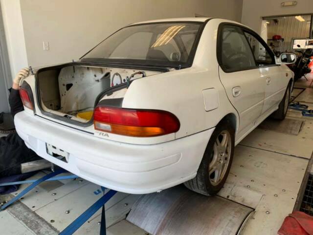 This is a rare WRX RA, 5th injector model, first year for these, hard to find. especially with just 48,000klm (30k miles) on it. This one gets even crazier. Please read it all, but please feel free to ask questions.Just had full service: new plugs, coils, oils (all) and filters changed and a full checkover. Front mounted intercooler.Zero sport race ECUSwirl potGroup N engine and trans mounts, diff mountsClosed deck blockLSD'sCUSCO Adjustable strut tops for camberCurrently has gravel struts and springs - make great rally X carFitted new calipers and rotorsstainless tubular headerscompletely stripped interiorstarts on starter button and toggle switchStitch welded around strut towers and wheel wellsCompound gauge and boost gauge.Boost control nobperspex rear windowVery light. We estimate approx 2500 lbs or lessRust free ChassisFibreglass trunk lidATL racing fuel cell.Only mild signs of gravel rash from rallycrossing in JapanCan be registered in any state but... it's a race car. Currently has NO front passenger windows Great bones to create a Time Attack winning car, hillclimb car, or kick ass autocross car. My comments:Ive poured all over this thing and it got a few different things about it. This may well be a pre-production vehicle, it has the alloy hood on it, but the bolt holes dont meet factory Subaru hinges, we think it may be a pre-production alloy hood. Can share more details with any inquiries, please feel free to ask any question. I just bedded the new brakes in yesterday at the track. I kept boost down to under 1 bar. What you do with it is up to you. But we did run it on the dyno using 110 gas and it pulled 344 hp atw. We didnt touch anything, it was only to get a perimeters check to make sure it's running ok. It is. I expected about 200 atw, it almost doubled that. IT kinda scared me so the lucky buyer should be a thorough Subaru enthusiast with good knowledge on these, or know a good Subaru shop. Im thinking it has built internals to pull that much power straight off the boat, literally. Build a killer RallyX car and win a few championships. Comes with all Import paperwork. |