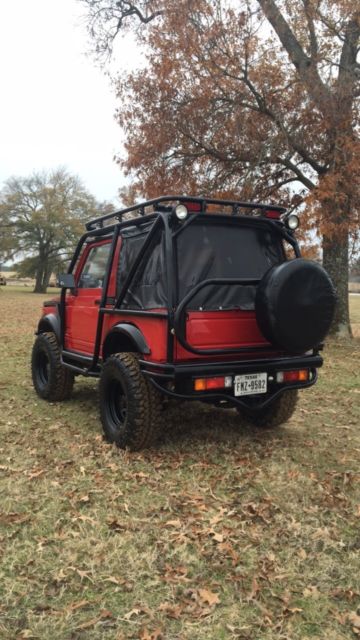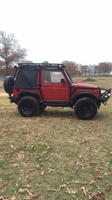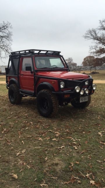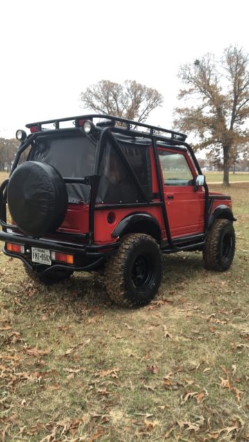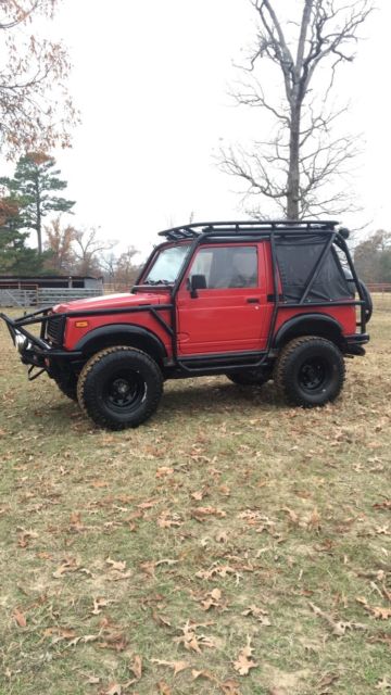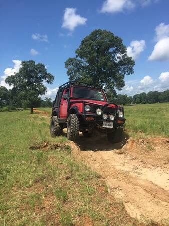 1991 Suzuki Samurai 4x4. It's a clean daily driver car built to go anywhere on or off road with all the best parts money can buy for samurais. Here's a list of mods:5 inch lift with OME HD springs4.16 T case gearsTrail tough twisted t shift shafts (2wd low mod)Mighty Kong II t case cradleHD mountsHD clutchAftermarket stereoA/C installed but not wiredNew shocksNew batteryBrand new tinted top with zip out sides31 inch Super Swamper Trxus Tires, 2,000 miles on themEverything listed above done within the last year.It has the best Exo cage you've ever seen, would cost thousands to have made. Looks incredibleWas originally a 2wd, making this a rare car. Every drivetrain component has been gone through in the last year, it is ready to go. Near restored quality just needs the a/c wired up but it's there, they didn't come with them from the factory. It is the cleanest one I've seen, I've owned 6 samurais and this one was intended to be a keeper but I'm hurting for money and need it gone. $9,000 is where I'm at on it, over $17,000 investedMUST SELL!Any questions call or text 903-570-2179 Keywords: jeep 1500 2500 3500 wrangler rubicon crawler rock mud four wheel deer lease dodge Chevy Toyota Tacoma land cruiser 4Runner ford