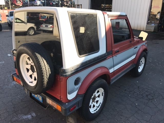 1986 Suzuki Samurai good original survivor car. Spent most of it's life towed behind a motorhome.Runs and drives great: stock drivetrain with original 1324cc 4 cylinder engine and 5 speed transmission. The only modification I'm aware of is an aftermarket tach. This Samurai includes anoptional removable hardtop (could be an aftermarket top?) and stock wheels. Interior is original and in very good condition for the age of the vehicle.Odometer shows mileage as 122,459 butI haven'tvalidated it. Body is in very good condition with original paint and factory stripe package. Vehicle was sold new in CA; no rust is present. No warranty expressed or implied; sold as is.