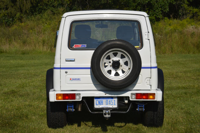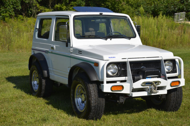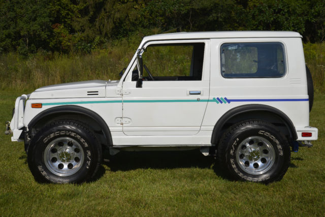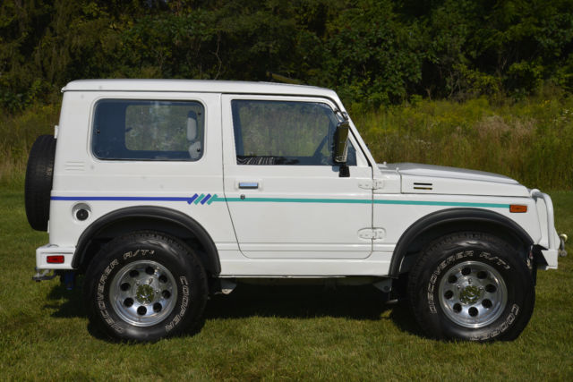 Very nice, 1988 Samurai Tin Top. Restoration started just over 4 years ago in my garage and since these things are never truly done, the next owner is going to have to carry on. I have added many new and different items and I'll start the list off with: Complete Japanese domestic market interior (front and rear). Zuks off road Town and Country seat swap. 1.6 Fuel injected 8 valve motor transplanted from Geo Tracker along with a 3 speed automatic transmission all done with Trail Tough mounts and wiring harness. Runs and drives great. Keeps up with highway traffic just fine and will run 65+ on the freeway all day long. This is not a show car but a daily driver so it was built that way and it does have it's minor flaws. Numerous upgrades including Power Steering, original Suzuki Samurai Automatic front locking hubs, Zuks off road heavy duty front bumper with brush guards, Traveler 8,000 lb Synthetic line Winch, Zuks off road header and 2 inch stainless exhaust modified for the automatic transmission, Rancho shocks, Cal-Mini reverse shackle lift kit, 265/75R15 Cooper Discovery A/T3 on 15x8 American Racing Polished Aluminum rims and Mud Buster 3 inch extended Fender Flares. One of a kind JDM chrome rear view side mirrors (I am sure you've never seen those before). Optimum Yellow Top battery and many many more items. Feel free to stop by and check it out, or send a friendly mechanic or call me on my cell with any Questions. Kevin at 810-338-2934. This is a reserve auction. I feel that my reserve is very reasonable and if you must know, you can call. $500.00 NON-REFUNDABLE deposit is due within 24 Hours of auction end. Shipping is on you and believe me when I say you could drive this home to wherever you live. That being said this is an as-is auction. No warranty is implied. Thanks for looking. Bid often! Bid high! lol