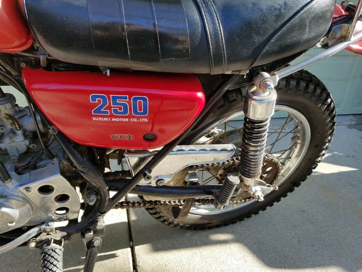 About this vehicleThis 1974 Suzuki TS250 is an original. The owner has had it for 5+ years. The vehicle runs great.Seller's NotesRuns great, just rebuilt top end, starts up on two kicks, does have some pitting on chrome, seat needs a new cover, gas tank has no dents, inside of tank just needs a cleaning, paint is fading and is scratched up, oiler works, new tires, head light works, taillight works but has wrong bulb in it, turn signals are not working, horn is not working, over all nice original survival. If I forgot something I'm sorry. sold as is. I do have a title for it signed and ready to go but in California buyer will have to pay $800 to get it back to be registered out-of-state buyer's will not have to pay that fee.ExteriorInteriorEngineDeposits are nonrefundable.Created on the eBay Motors app