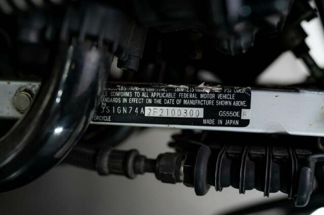 | . What the GS550E was lacking in size, made up in style: the small bikini style fairing was color coordinated to the cycle parts. With the original exhaust system and only 11,471 miles, this motorcycle is ready for a new home! |