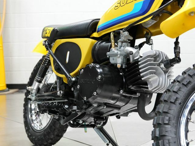 This beautiful 1978 Suzuki JR50 has been lovingly restored using OEM components, and it’s now available from the MAXmotive Pittsburgh Showroom. The bright Phlolina Yellow paint and chrome wheels really shine. Black accents include the seat, grips, and the engine itself. The correct blue graphics provide contrast and a performance look. The engine is an air-cooled 49cc two-stroke combined with a single speed automatic transmission that makes operating the bike simple and fun. New knobby tires work great on turf or trail. The JR50 was the smallest Suzuki model made up to 1978, and it’s just right for a variety of fun uses. Sold on Bill of Sale. See detailed photos at