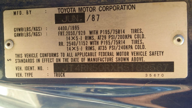 1987 Toyota Custom Cab Truck seats 5 passengers!