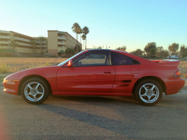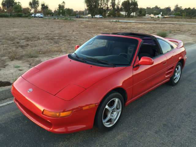 1991 Toyota MR2 BASE (non-turbo) 2.2 Liter naturally-aspirated 5S-FE engine 5-speed manual transmission Targa top (t-tops) Power windows Power door locks Cruise Control AM/FM Cassette (orig.) Power antenna (fully retracts and extends) 15 inch 5-spoke alloy wheels (inch-up from OEM 14”) Repainted Subaru Red in 2006 (a shade lighter than the Orig. color) Garage stored for the last 5 years New battery Clutch replaced around 100,000 miles Clean title: Just smogged and registered adult-owned; never raced, rashed, r modified engine has smoke on startup if it’s been sitting a long time engine appears to have some oil leaks A/C does not blow cold occasional high idle Tint has some bubbling (rear window, ear-quarter windows, -tops) Factory CD player not working Sale is AS ISno warranty is expressed or implied. Serious inquiries only. |