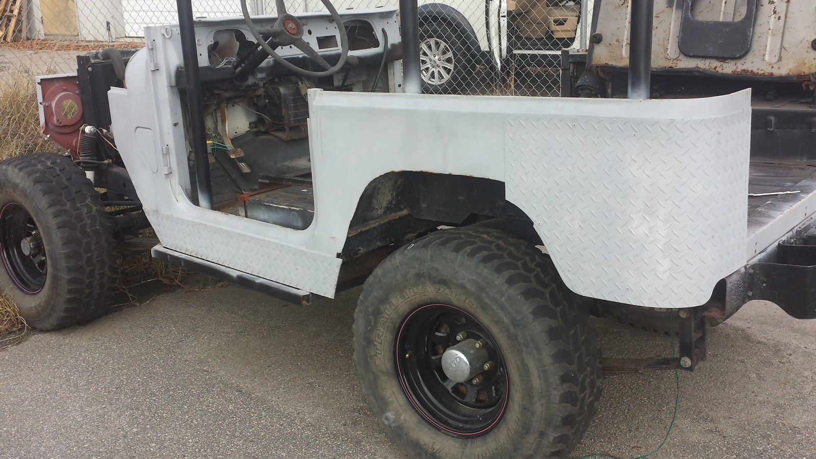 | 1970 fj40 project needs completion motor starts and runs good will drive but needs brake work "soft" i have all fenders aprons hood all in good shape lights switches gauges. Also i have new seats belts bikini top soft half doors fender flares running boards all new hood and windshield hardware new badging will need tires and a windshield frame and tub has been coated with no rust i have to many other projects to finish plus building a new house just dont have time or room the corners and rockers all have diamond plate that was going to painted so they are primed too will needed to be towed or shipping will start up and drive on trailer i wish i had some where to store it i would just keep it and finish later any questions let me know located in myrtle beach sc 843-467-4156 call or text |