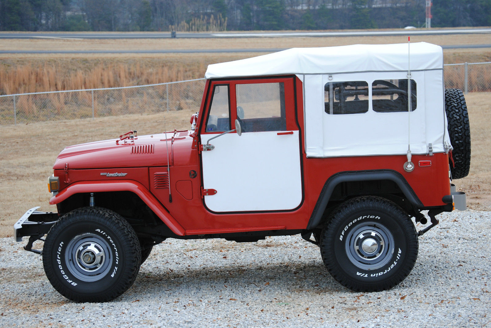 1975 Toyota Land Cruiser FJ40FJ40L. Factory Soft TopFreeborn Red1/75 Build DateVIN# FJ40192188Engine # 2F 0029784-Speed Manual transmission-1 California owner since 2/1977. open California title in hand-Sold new at Frank Motors Toyota in California in 5/75 (NOT a South American import). nbsp;-I obtained it in summer of 2014 and brought it to Greenville. South Carolina. where it is located-approximately 25. 00 original miles. (currently being driven)-No Rust. ever. All original sheet metal. no filler. -Recent paint. nbsp;upholstery. cosmetic refurbishment. -Body panels were disassembled prior to painting and the Freeborn Red paint shows very well. -New upholstery on original front seats and jump seats in correct gray vinyl-Fresh fluids (engine oil. transmission. transfer case. axles). filters. tune-up-New OEM soft top. door skins and soft-top frame -New 2. 5" Pro Comp leaf springs and Bilstein shocks-New 33x10. 50/15 BFG All Terrain tires-Holley carburetor with headers and free-flow exhaust. runs great with this configuration; original 2F air cleaner remains with the vehicle in case buyer wants to return to stock; original smog equipment also remains with the truck. i. e. Air pump. VSV. charcoal canister. etc. (sorry. no carb)-The original set of tires. and only other set of tires that have ever been on this vehicle. will also come with the vehicle if the buyer wants them. (H78-15 Dunlop Snow Cruisers with date stamp of 12/74)-Fully functioning lights. blinkers. gauges. heater. etc. -Dash is uncut and all original. including original AM radio. which works. One toggle switch installed in factory opening that controlled a Warn 8274 winch. which I removed to install a new OEM Toyota bumper. -Original paint on dash and floorboards and under seats. Interior of cargo area and wheel wells was repainted and looks great. -Original Toyota floormat. owners manual. emissions/maintenance manual. safety door straps for when the factory soft doors are removed. jack handle and extensions (sorry. no jack). -Two California blue plates issued in 1977 with Frank Motors Toyota license plate frames for your collection-Engine very strong. fires right up and idles well. no smoke at all. burns no oil. Slow oil leak from the rear main area. just a few drops over time. and not worth the time or money to fix; no other leaks at all. -Shifts well. 4WD works fine. Warn locking hubs turn freely-very little slop in the manual steering; tall. skinny tires allow easy steering and driving-suspension is not stiff and rides great. this combination of springs and shocks has been described as the best riding set-up for 40sA little about its history:This vehicle was purchased by a couple who owned a jewelry-making business. They wanted this vehicle in order to scout out the mountains of California in search of gemstones. The wife did not like the drab colors that were offered in these and insisted on the red one at the dealership. Good choice. They used it for a couple of years as intended. but the wife finally decided it was just too rough-riding for her. It then stayed on their farm in the very dry region of the Sierra Nevadas in California ever since and accumulated just a few more thousand miles. Over the years. the dry climate and sun took its toll on the paint and top. so the previous owner had it painted and an aftermarket Bestop installed. (The cracked steering wheel can be attributed to the climate as well. ) I personally installed the OEM style soft top. new suspension. and performed the baselining maintenance and other minor repairs. Previous owners contact info can be supplied to the next owner. I have spoken with him a couple of times and he loves to talk about this old Cruiser. The FJ40L. with its Factory Soft Top configuration was only sold in the US through 1976. according to my research. 1975 and 1976 are the only years that a FST was available with the 4 speed manual (as opposed to 3 speed) and larger 2F 4. 2L engine. Total number of FSTs produced from 1975-76 is probably between 1000-2000 units. The rarity of this vehicle. nbsp;combined with its condition. makes this an investment quality Cruiser. Note this is NOT a South American import; this is a California-spec. US FJ40. Call or email with any questions: Stu-(803)270-4411Scroll down for pics. thank you. Photo gallery Photo gallery click to enlarge click to enlarge