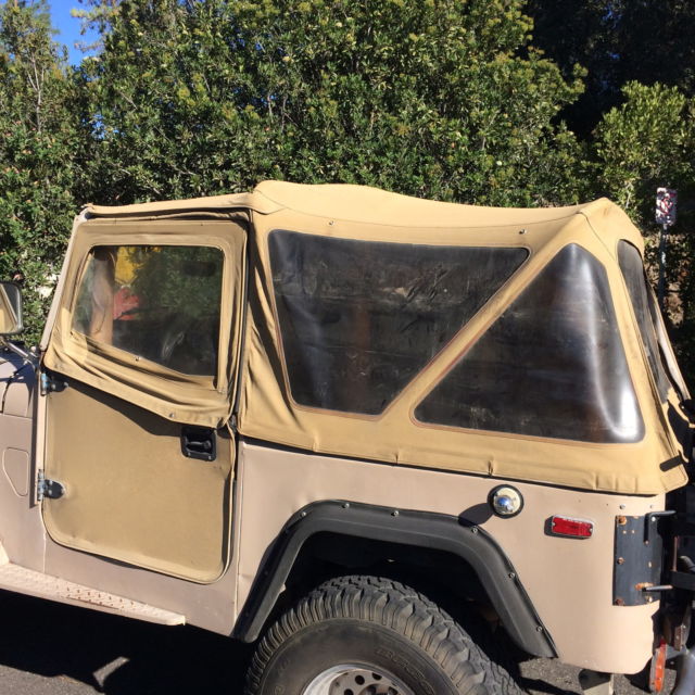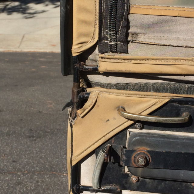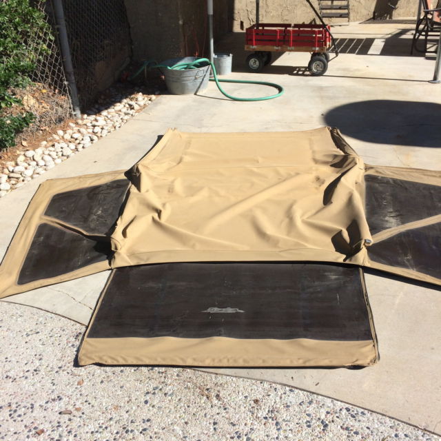 | THIS IS A USED K-LINE TOP WITH HARDWARE, HE ZIPPERS ON REAR WINDOW ARE DAMAGED, EFT AN RIGHT DOOR SEALS ARE TORN AT LATCH, LL WINDOW PLASTIC IS FOGGY. TOP IS APPROX. 12 TEARS OLD. PACKAGE AND SHIPPING WILL BE $90.00. NO RETURNS |