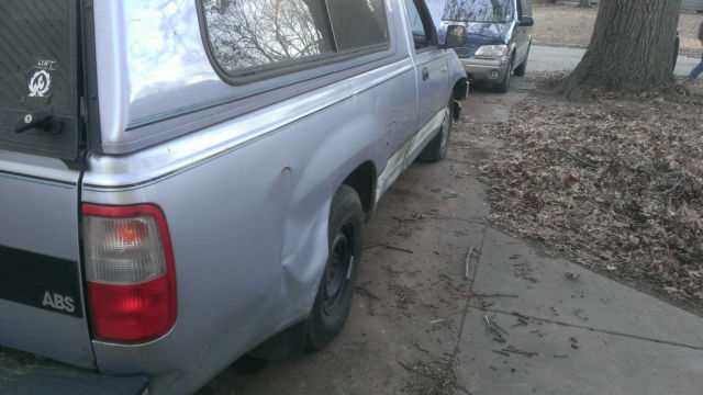 1993 Toyota T-100 Has minor body damage. Interior is in good condition for its age, o tear in the seats, arpet has always had a full mat over it. Engines runs but it makes a loud knocking sound in the rear end. I have never had it looked at, ut have been told it could be the Ujoints making the noise. Vehicle is being sold as is. I have title and it is clear. Must pickup vehicle within 7 days |