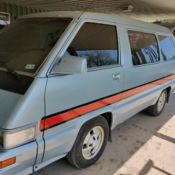 This is our old family van which we are finally selling. We held out hope for many years of maybe reviving it, ut reality has set in. Single owner. 1987 Toyota Van. Some body damage and interior is not in great shape. See pics. Odometer broke around 278,000 miles and truthfully we estimate the miles at 300,000. My husband works 3 miles from home and for many years just drove it back and forth to work basically. I told him I needed full disclosure to list this on ebay so here goes; Motor works-in good shape. Transmission slips when cold but after that warms up and shifts good. Drivers side window does not work but you can shimmy it up and down with hands. Passenger side window does work and back sliding window on drivers side opens and closes. Windshield is cracked. It has new back brakes - dual AC does not work not sure why. Heat works. Interior damage includes cracked dash and ripped fabric to where underfoam is exposed on both front seats. Here is what my husband did. "While trying to put in a new battery he got cables crossed. There was a big spark and he pulled the cables off real quick" and since then it has not started.?!?! As I said, full disclosure". Front brakes need overhaul but we have calipers, rakes, ads, otors to do this and included in auction. Tires are really old. Muffler needs replacing. We put a sunscreen film on windows that was kind of temporary that is what the bubbles on glass is. I don't know if it can be removed, ut its possible. Includes full back seat and the 3/4 middle seat. Back hatch opens (trunk) and it is a 4 cylinder. We have the book if you need more info. When we were driving it we got great gas mileage. Interior seat belts, arpet are stained in back. Some stains on seats. Have cleaned it minimally, o detailing just vacuuming, ashing and wiping a bit. We have service records available also. Please feel free to contact me via email through ebay.