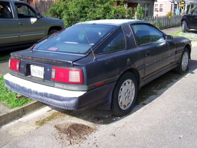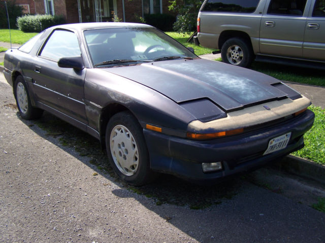 If anyone is interested in parts off this Supra, please send me a message. I may want to part it out if it does not sell soon. This item is a 1987 Toyota Supra with the 7M-GE non-turbo in-line 6-cyl engine and 5-speed manual transmission. It is the best car I ever owned. Mileage is 228,536. I became the third owner when I bought it in 1993 with 90,000 miles on it. It was adult-driven only by the second and third owners. Not sure about the first owner, but it was in perfect condition when I got it and nothing had been replaced. The things I have replaced are several sets of tires, timing belts, muffler, plugs and wires, starter and alternator, water pump, one u-joint on the driveshaft, clutch master cylinder, brake pads, some belts and hoses. It was running well 12 years ago when I started replacing the thermostat because it seemed to be sticking. One of the bolts wrung off as I was removing the thermostat housing cap. At that time I was so busy with work and family that I did not get around to finishing the job until 2 years later. Had to pull out the distributor in order to remove the thermostat housing. Could not get it to fire up after completing the thermostat job. Tried a different used distributor but that did not help. Don't remember whether the original distributor or the replacement is now installed, but both are included in the sale. The original owner's manual and original Supra floor mats are included, but the driver's mat is badly worn. The dashboard is cracked in multiple places, rust is showing above both rear wheels. The radio antenna is dangling, the paint and both bumpers are badly faded. The wheels are all original and the original donut spare is included. The hood and hatch cylinders are bad. A previous owner replaced the radio with a Koss aftermarket radio/CD player.