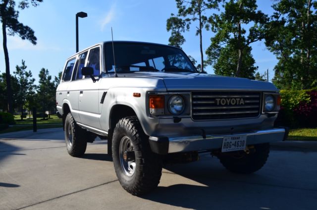 Beautiful 1985 FJ60 with less than 106,000 original miles. New paint in original silver. Never had any rust. Body is straight. New OME heavy duty suspension lift. New exhaust system. AC recently converted to R134a, and the coldest in Texas. Interior is perfect except for the dash pad which does have some cracking. I have a plastic dash cap and a carpet dash mat that both look very nice over the pad. Headliner is nice and tight. Seats have no rips or tears. The only things that are not operational are the headlight washers and the rear window washer. Everything else works, the dome light, the rear hatch light and even the glove box light all work. Tires are almost brand new 33" BF Goodrich Mud terrains, even the spare. Extra original spare will also come with. Drives down the freeway at 70 MPH just fine. Shifts in all gears great. There is not a lower mileage FJ60 out there for sale. Get this one before winter comes. I will not set up shipping. I would advise driving home yourself or arranging a covered carrier. I will assist with a ride from the airport or with the loading onto your shipper.