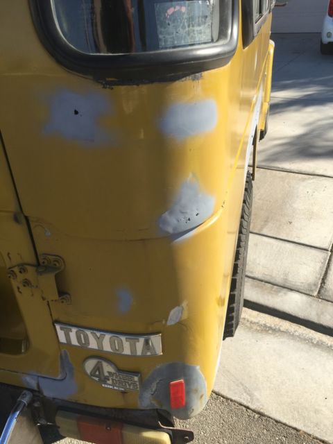 • Here's a rare chance to own a 1984 hj47 Toyota Land Cruiser right hand drive diesel VIN HJ47036919with an amazing look . Only a few in the U.S ready for a total resto or just drive it as is. Bought it a couple years back from a gentlemen in Florida and been driving it ever since . Five month ago I took it to a body shop to start the restoration and to my surprise the guy never had any time to work on it other than sand all the areas that needed attention and patchy two areas . Pulled it out of there a few weeks ago and now selling it to finish funding my other projects .I painted all the bad areas with primer to cover where he sanded. To protect the good metal around it . The good ... It has the original bullet proof diesel motor. It has a frontal middle seat that makes it more comfortable for all passengers .disk brakes on the front . New BF goodridge 31x10 tires make it look very original with the original hubcaps. It also has the very popular mustard yellow color. No cracked windows .Everything around the gray areas are very solid solid metal . And is guaranteed to attract crowds. The bad .. The speedometer or odometer has never worked. The front and passenger floor need attention andcan be purchased on eBay for under $200 each . Need welding and patch work on all gray areas . ...Everything around the gray is solid . The shop broke the turn signal lever which you could order on eBay for $36.76 and $29 dollar for shipping. Steering box leaks oil .Feel feel to contact me with any questions 951 205 2078 . Buyer is responsible for shipping I will assist as needed. $500 PayPal deposit is required within 24 hours after auction closing .remaining balance due within 5 day auction closing in a form of a wire transfer. Cashier check or cash .land cruiser is for sale locally so auction may end at any Time.good luck and happy bidding .LOW RESERVE