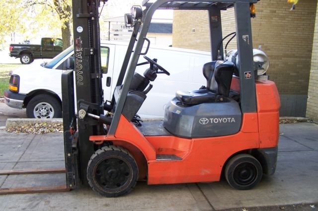 | Very nice low hour Toyota forklift. 189" three stage mast (lifts 15 1/2 feet). Propane powered (tank not included, can not be shipped with tank), Equipped with sideshift (hydraulically moves forks from side to side) email any questions. email me for payment instuctions. come on by and take it for a spin. buyer responsible for freight costs (I may be able to help arrange.) |