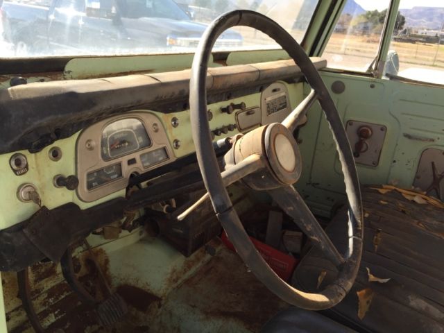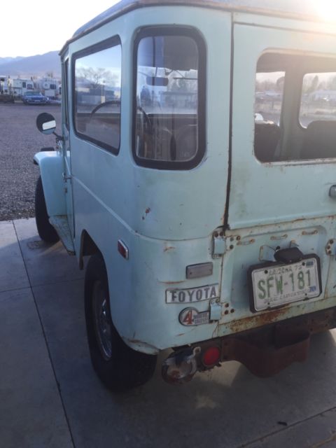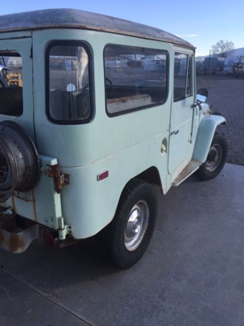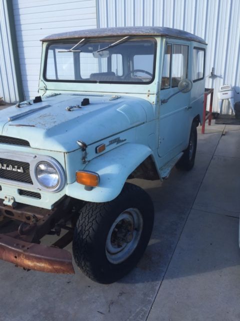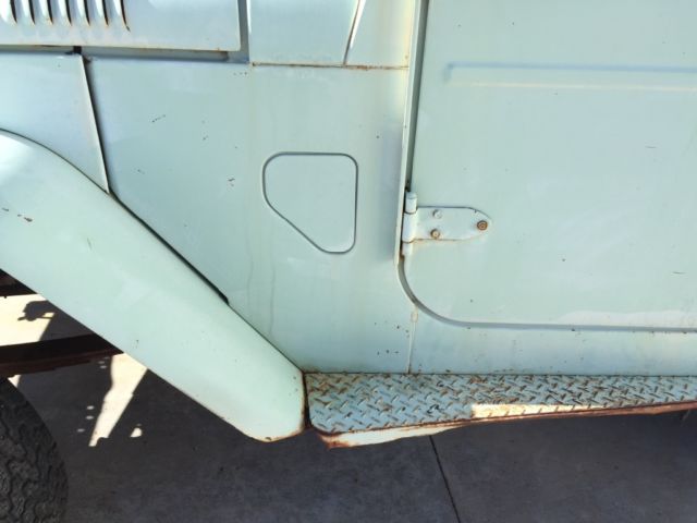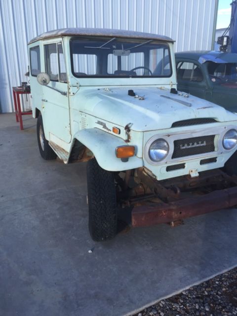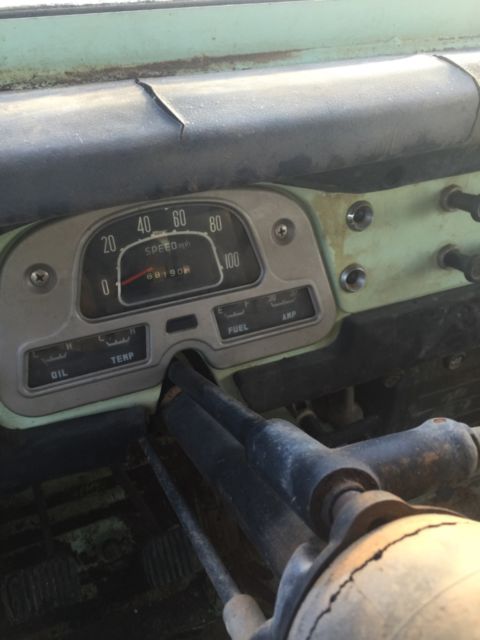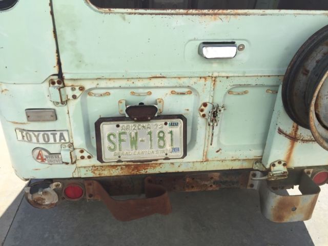 Original FJ 40 purchased from estate of the original owner. From plates it appears to last be driven in 1978. Mileage show 68,300 which I believe is original being parked in 1978. Clear Arizona title in my name shows actual miles. The paint is original and has never had repairs or painting done. Top paint is gone from the hot Arizona sun. Body has no rust as you can see in the pictures. There is some surface rust on the rear floor pan but just surface no rust thru. Bottom of floor pan and frame are excellent no rust showing. Interior needs replaced, it is complete including the rear side seats. The material on the seats and headliner are bad. I have not tried to start it but engine is free and turns over. Looks like it was parked because owner was going to replace brakes. The rear brake linings and cylinders where inside the cab. It is complete and I do not know of anything missing except front hubcaps.Great FJ to do partial restoration and leave body paint as is or restore. Hard to find one this rust free and original. Call or email for any questions or more photo's. Mike 719-338-6449. Vehicle is located in Arizona. Can help getting it shipped. Vehicle is for sale locally also.PayPal for deposit only of $500.00. Balance by wire transfer or cash.