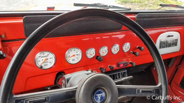 Very clean FJ40. This Land Cruiser looks to have started out as a right hand drive vehicle that was converted to left hand drive. Nice paint on what appears to be a clean body. Clean stock style interior. The dash has been modified to accept aftermarket gauges. Currently only the speedometer and volt meter work. Stock 6 cylinder starts and runs good. 3 speed manual transmission shifts good. Power steering has been added. Slight lift kit installed. Appears to be a frame off project that stalled when almost finished. Needs very little to be completed but is functional as is. Clean Colorado title. At our dealership we work very hard to accurately describe our vehicles through text descriptions and elaborate photos. When you purchase a pre-owned vehicle it is not a new vehicle. Any used vehicle can have normal wear and blemishes. Before placing a bid please read the descriptions thoroughly and view all pictures. |