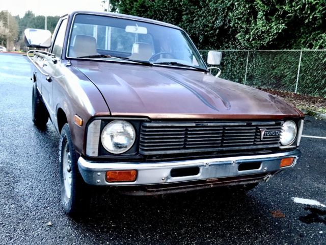 1979 Toyota SR5 long bed 1/2 ton 2WD pickup.5 speed manual transmission.20R motor.249K. Clean Washington State title in hand. Truck runs,shifts through all gears,drives and stops. Running lights, signals,gauges, radiooperational. Windows crank properly. Doors close and lock.Straight body. Bed appearssolid; has surface rust.Glass good all around, small chip on windshield.Original paint is weathered. There are a couple of small, quarter size rust through spots on floor pans in cab.Seats need recovering. Dash is cracked. No rear bumper. Motor leaks small amount of oil. Battery weak from sitting. Has been stored indoors last couple of years. Collector license plate.