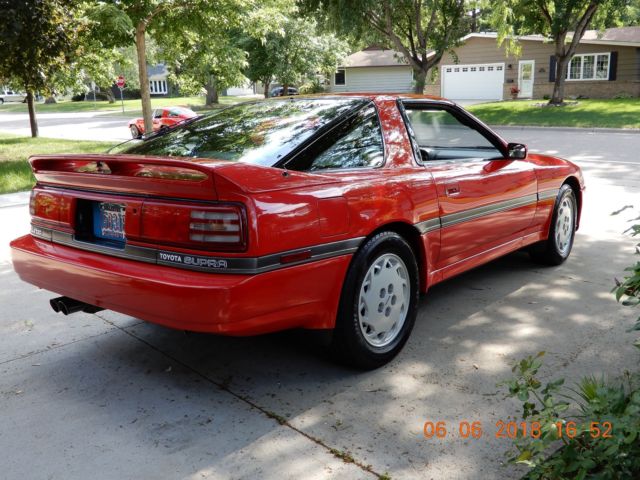 You are looking at a 1989 Toyota Supra Turbo, loaded, leather, "TEMS" with removable top. Impeccable, same owner last 23 years. Babied, cared for, never driven in snow, always driven with the bra on. The car you see here is the most well cared for and maintained Supra you will ever find. Original "Super Red" paint. This car has all the factory options, Anti Lock "TEMS" System and the dual leather power seat package and it came with a $30,000+ sticker in 1989. All the power windows and seats work excellent. The AC is ice cold. Cruise control functions properly. The car is simply in Tip Top condition. We have a copy of the original window sticker. The car is available for any type of inspection you want. The car is in near mint condition. Rare find. Thank you, Roger, 612-849-6350...Please no texting or email. I prefer phone calls. Thanks. |
