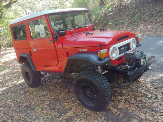 Rebuilt 75 FJ Land Cruiser four wheel drive. 350 Chevy V8 conversion with 89,000 miles. Drive and runs like new. Very strong engine with new aluminum radiator, new 100 watts Alternator and new battery. New Differential and rear drive train. Dual Fuel tank with single intake. Front electric Winch with Remote. Not Currently set up as a crawler. Setup for light off road and freeway driving. Look at the list of new parts below for more information. Note* There is NO rust on the entire truck. The paint is not professionally done and only meant to protect the body and make this FJ look good while driving. A close inspection will reveal the imperfections in the paint. -Chevy 350 V8 engine Automatic transmission. -NEW DIFFERENTIALS (65 MPH on freeway) -INSPECTED 700 4R TRANSMISSION -NEW BRAKES (DISK IN FRONT DRUM IN REAR AND BEARING SET/SEALS X 4) -NEW ALUMINUM RADIATOR -NEW ALTERNATOR, BELTS AND BATTERY -NEW FUEL PUMP AND FILTER -NEW FRONT AND BACK SEATS -NEW RADIO AND CB -NEW TIRES PLUS LIFT KIT -NEW MATCHING SPARE TIRE -HARD TOP WITH NEW LINER -ROLL CAGE WITH CUSTOM ROOF RACK - TAIL GATE WHEN HARD TOP IS OFF -5000 LBS TOW HITCH… |