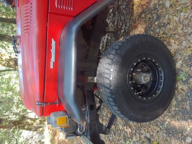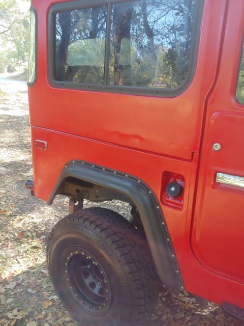 Rebuilt 75 FJ Land Cruiser four wheel drive. 350 Chevy V8 conversion with 89,000 miles. Drive and runs like new. Very strong engine with new aluminum radiator, new 100 watts Alternator and new battery. New Differential and rear drive train. Dual Fuel tank with single intake. Front electric Winch with Remote. Not Currently set up as a crawler. Setup for light off road and freeway driving. Look at the list of new parts below for more information. Note* There is NO rust on the entire truck. The paint is not professionally done and only meant to protect the body and make this FJ look good while driving. A close inspection will reveal the imperfections in the paint. -Chevy 350 V8 engine Automatic transmission. -NEW DIFFERENTIALS (65 MPH on freeway) -INSPECTED 700 4R TRANSMISSION -NEW BRAKES (DISK IN FRONT DRUM IN REAR AND BEARING SET/SEALS X 4) -NEW ALUMINUM RADIATOR -NEW ALTERNATOR, BELTS AND BATTERY -NEW FUEL PUMP AND FILTER -NEW FRONT AND BACK SEATS -NEW RADIO AND CB -NEW TIRES PLUS LIFT KIT -NEW MATCHING SPARE TIRE -POWER STEERING -HARD TOP WITH NEW LINER -ROLL CAGE WITH CUSTOM ROOF RACK - TAIL GATE WHEN HARD TOP IS OFF -5000 LBS TOW HITCH... |