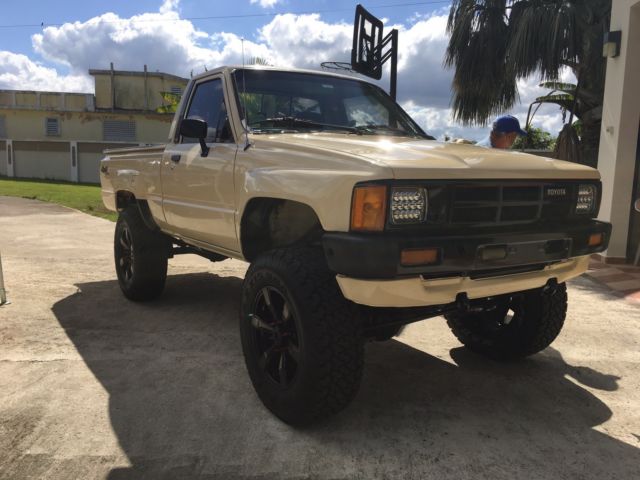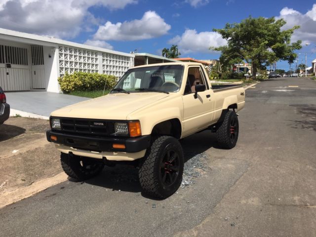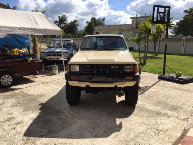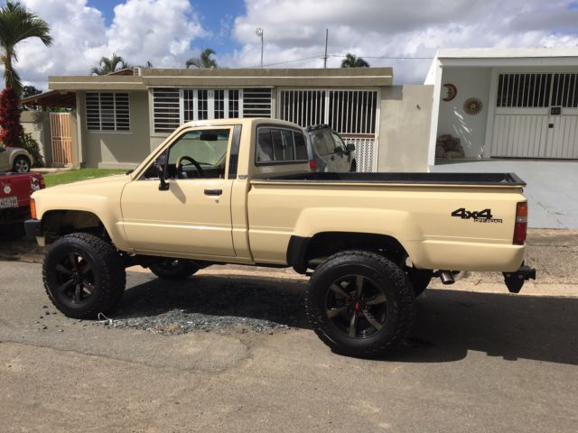 Very clean Toyota pickup 4x4 sr5, 22r engine, 98,400 original miles... a/c works perfect/ brand new 17 inch wheels and tires, suspension upgrade, no rust. Has radio/ all lights in good working order/ includes all 4 original wheels and tires/ if you wish to have it shipped i can find a shipping company that ships from Puerto Rico |