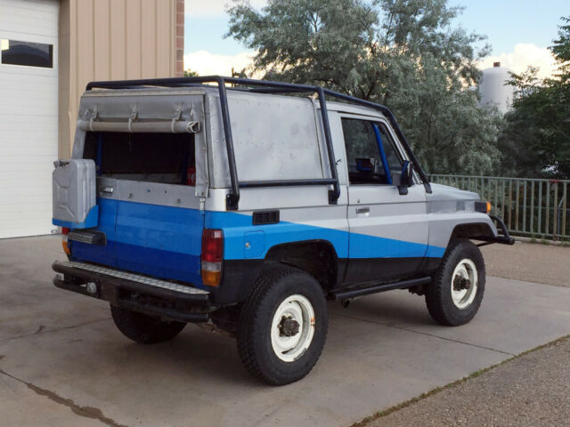 Here's a 1988 BJ71 short-wheelbase, 70-series Landcruiser from Europe (France, in this case). Left hand drive, original 13B-T turbo diesel motor, H55 5-speed manual transmission. Super rare to find left hand drive and the 13B-t turbo diesel motor together in the same truck as Toyota only sold a limited number in very few markets that were equipped like this. Shows 111,550km as of today (about 69,300 miles), but no idea if that's original. I imported this myself last year and had big plans that don't look like they're going to happen now, so here it is. Starts quickly and easily runs good and strong ("peppy", compared to my 3B powered truck) compression tested, good, and consistent (380psi +/- across all cylinders, measured stone cold) fresh turbo (according to a receipt, in French, from the PO) injectors just rebuilt (Diesel Forward, in Denver) gauge shows good oil pressure no unusual smoke shifts smoothly Comes with: Ironman springs with 2" lift onboard air compressor (unknown brand) fire extinguisher custom tube bumpers and sliders big ass winch (didn't see a brand on it, but then I didn't look very hard) interior and exterior roll bars super supportive aftermarket seats rally computer (no idea how to work it, instruction manual likely available online) rear mounted jerry can auxiliary lighting no carpets or mats custom diamondplate interior panels side exit exhaust (didn't measure it, but it looks like 2.5") a small assortment of spare parts (if it's a deal-breaker for somebody, I'll try and get a list together) ...and probably more I'm forgetting Wheels are original type, Euro-spec split rims. The four rollers have Goodyear Wrangler 7.50R-16 mounted to them, and they're in good shape--definitely roadworthy. The spare wheel is included, but buyer probably should get a new tire for it. As you can see in the photos, obviously the PO has "customized" this one. Maybe not to everyone's taste, but a lot of people seem to like it. Rear roof has been cut off, and a custom aluminum-skinned cover put in its place. Rear "hatch" is a heavy rubberized canvas type material with a clear vinyl window in it. Rear doors have been cut as part of the customization. The whole thing can be unbolted if desired for a demi-convertible effect. Everyone's going to ask if it has any rust. Yup. If you're looking for a rust-free car, maybe you shouldn't be looking at 31 year old Landcruisers. :-) Floors and frame are solid. Some rust at the bottom of driver's door, and in the rockers. Totally normal for these cars. Unusual when they don't have it. Actual VIN: JT1V0BJ7109001485 eBay doesn't recognize foreign market VIN numbers, hence the 17 zeroes above. I'm sure there's more to say, but that's all I can think of right now. Happy to answer any questions about it. |