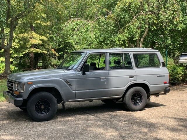| Classic 1988 Toyota Land Cruiser recently restored with new front seat upholstery, hands free phone & bluetooth JVC System with 4 speaker surround sound and wiring for sub-woofer. New gas lines and tank, new shocks, complete professional engine overhaul and tune-up. replaced both rear quarter panels and has professional Audi Nardo Grey 3 coat paint finish. Custom black wheels and trim, roof rack, tow hitch, electric front seat, automatic trans, power steering and brakes. This is super clean truck that gets a lot of attention. Runs and looks amazing. |