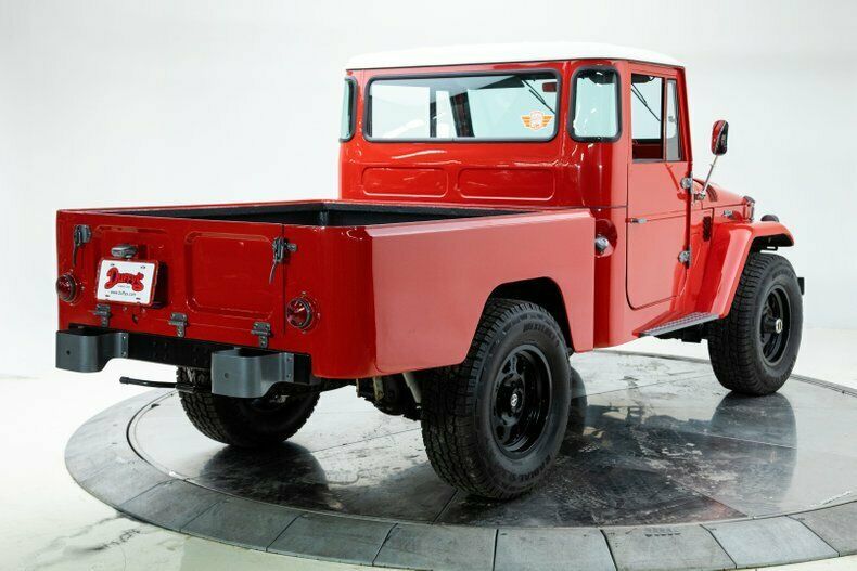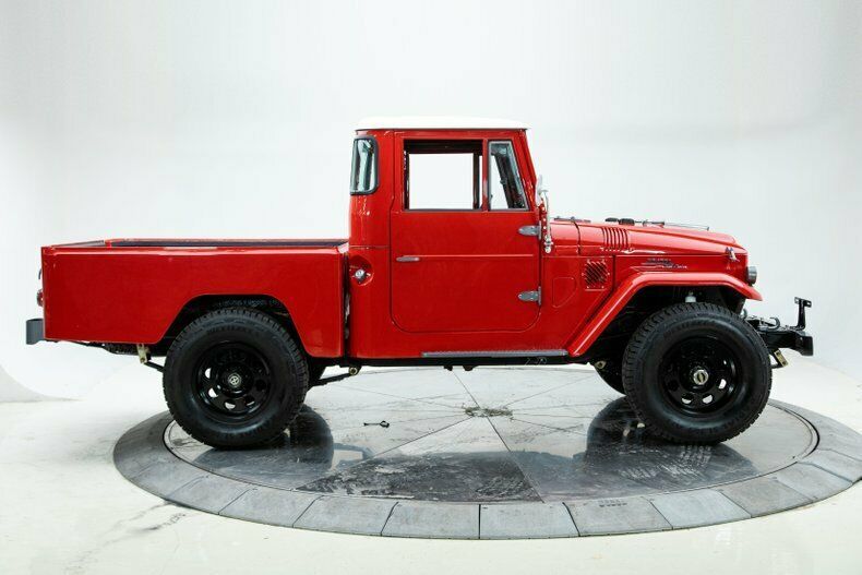 1967 Toyota FJ 45 Pickup This may well be the best FJ45 Pickup in the country today. Recent $150,000 nut & bold concourse body-off restoration. new everything, over 2 years to create. A Classic looking 1967 US model Toyota FJ4 5mated to: newer 1987 FJ60 mechanicals & options. FJ60 Highway Gears allow highway cruising of 70mph+. 4 Spd, Power Steering, 4 Wheel Discs, New Air Conditioning (Ice Cold). Ideal as a daily driver, use in the city, great for trips & vacations. She is Smog Exempt in all 50 states (including California). This is a 100% old Toyota, with modern Upgrades, Again this 53 year old FJ45 cruises at 70+ mph on the highway! Best of the Best! and not cheap to build. If you are looking for the best, look no further, this one is over the top for a true Land Cruiser aficionado. Fully sorted and serviced. ready to drive and enjoy. Newer $150,000 Body Off Restoration! 1987 modern 2F 4.2 Liter motor 4 Speed Power Steering New Front Wheel Power Disc Brakes 4 Wheel Leaf Spring suspension Vintage Air Conditioning! 3:73 Gears (72mph!) New Fully functioning Dakota Digital Gauge Cluster 17" American Racing ATX Alloy Rims in Black Westlake 285/70/17 All Terrain Tires Fully removable convertible hard top. Like brand new. Drives even better, with rugged good looks. |