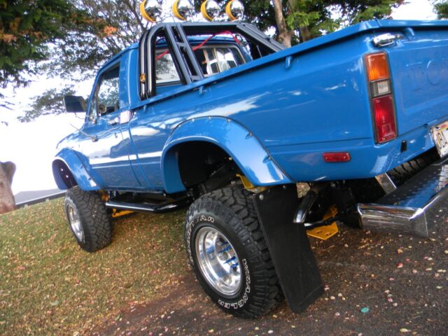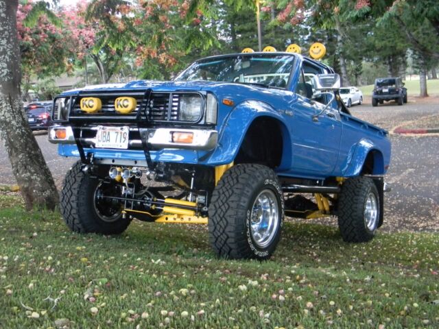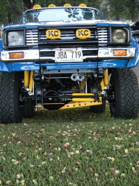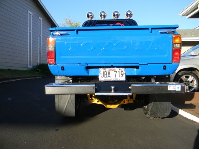 Vehicle Details HERE IT IS TOYOTA OFF-ROAD GUYS THE FIRST OF IT'S KIND GENUINE VINTAGE 1979 1st YEAR 1st GENERATION TOYOTA 4WD TRUCK, AND IT ONLY HAS 84,00 ORIGINAL MILES RECENTLY RESTORED BACK TO AS ORIGINAL AS POSSIBLE WITH SOME BOLT ON OFF-ROAD PARTS ON IT, THE THEME OF THIS BUILD IS 1980's/90's CALIFORNIA LOOK AND IT'S CHERRY, WHEN THIS TRUCK CAME OUT IN 1979 IT WON FOUR WHEEL DRIVE OF THE "YEAR" FROM OFF ROAD MAGAZINE AND FOUR WHEEL DRIVE MAGAZINE WHICH ARE STILL AROUND TODAY AND ARE CONSIDERED THE BIBLE OF ANYTHING OFF ROAD. AS MENTIONED EARLIER IT UNDERWENT A RECENT FULL RESTORATION AND IS RUST FREE, WITH SEVERAL COATS OF EPOXY PRIMER SEALER UNDERNEATH THE BASE COAT CLEAR COAT ORIGINAL TOYOTA MED.BLUE, EVERY BODYPIECE WAS REMOVED AND SPRAYED SEPERATLY INCLUDING THE EDGES OF INNER BED/TAILGATE/GAS TANK FLAP/BUSCHWACKER FENDER FLARES/ENGINE HOOD/METAL-DASH/DOORS/HINGES/DOOR JAMS/ENGINE COMPARTMENT JAMS/ALL SPRAYED OUT, THEN ALL PAINTED PARTS PUT BACK TOGETHER METICOUSLY WITH NO SCRATCHES PRESENT, ALL THE OLD BED FLOOR SEAM BEADS WERE REMOVED AND HAVE BEEN FULLY SEAM SEALED WITH NEW BEADS, THEN THE WHOLE BED FLOOR WAS FULLY COATED WITH POR-15, THEN A HERCULINER COATING WAS PROPERLY LAID DOWN OVER THAT, GRAY WITH UV PROTECTION IN IT ALL THE ROLL BARS ARE ALSO COATED WITH URETHANE BASE COAT CLEAR COAT (black). THE INTERIOR CAB FLOOR HAS BEEN FULLY COATED WITH AN INDUSTRIAL COATING, THEN A SOUND/HEAT PROOFING INSULATION LAID DOWN OVER THE INDUSTRIAL COATING, FINISHED OFF WITH NEW BLACK CARPETING. THE INTERIOR ROOF OF THE CAB WAS SPRAYED WITH AN EPOXY COATING AND OVER THAT IS ALSO THE SOUND/HEAT PROOFING INSULATION, FINISHED OFF WITH A NEW DEALER BLUE HEADLINER. THE UNDERNEATH CHASSIS FRAME IS FULLY COATED WITH INDUSTRIAL PAINT (black) & RUBBERIZED UNDERCOATING UNDER THE BED/CAB FLOOR, ALSO SOME SUSPENSION PARTS HAVE BEEN CHROMED AND PAINTED OFF ROAD YELLOW THE ENGINE COMPARTMENT AREA IS THE ORIGINAL MED. BLUE FROM THE FACTORY AND IS CHERRY, THE ENGINE (20R) AND TRANSMISSION ARE ORIGINAL MATCHING SERIAL NUMBERS AND RUN WELL FOR THEY ARE LOW MILEAGE, ALSO THE 4WD TRANSFER CASE IS IN EXCELLENT CONDITION AND HAS NOT BEEN POUDED OFF ROAD IN IT'S HISTORY, L-4 AND L-2 WORK VERY WELL, ALSO THE FRONT 4WD HUB LOCK ASSEMBLY WORKS VERY WELL, BUT SHOULD ONLY BE LOCKED IF GOING IN MUD or SAND,THE CAB/BED HAVE BEEN LIFTED WITH 3" BODY LIFT, AND THE FRONT AXLE HAS 2" BLOCK LIFT WITH RE-ARKED LEAFS, THE REAR HAS A HELPER LEAF ON BOTH LEAF SPRINGS.THE BRAKES FRONT AND REAR ARE ALL BRAND NEW FRONT ROTORS/CALIPERS/PADS/FLEX RUBBER HOSES ALSO THE WHEEL BEARINGS HAVE BEEN REPACKED, REAR BRAKES NEW DRUMS/SHOES/WHEEL CYLINDERS, FRONT NEW TIE ROD ENDS LEFT/RIGHT, RECENTLY INSTALLED POWER STEERING UNIT WITH DUAL ROUGH COUNTRY HORIZONTAL STABILIZER SHOCKS WHICH WORK WELL WITH THE BIG TIRES WHICH ARE 31's AND THE POWER STEERING, THERE IS 17 SHOCKS ON THE WHOLE TRUCK, WITH AXLE TRUSSES FRONT REAR TO PROTECT THE AXLE HOUSINGS, THIS TRUCK HANDLES LIKE A PORSCHE AND STOPS ON A DIME WITH NO PULLING TO LEFT or RIGHT, SO IT IS RUNNING MECHANICALLY SOUND FOR I AM A LONG TIME MECHANIC. THE ENGINE COMPARTMENT NEW BATTERY/RADIATOR/ALTERNATOR/RAD. HOSES AND MUCH MORE. OTHER PARTS ARE AIR HORN, CUSTOM FRONT CHROME GRILL, SMOKED PLEXIGLASS FRONT HEADLIGHT COVERS WHICH CAN BE REMOVED EASILY AND THE DASH BOARD AREA IS ORIGINAL AND CHERRY WITH A NEW DEALER DASH PAD ON TOP, AND EVERYTHING WORKS DASH DOME LIGHT/HEATER FAN CONTROLS/LIGHTER/GAUGES/ WITH A NEW OLD SCHOOL PIONEER SUPER TUNER/CD PLAYER/SUN TACHOMETER/VACUM GAUGE/ALSO THE REAR VIEW MIRROR DOME LIGHT WORKS WELL, WHEN YOU OPEN THE DOOR THE LIGHT COMES ON WHEN CLOSE DOOR LIGHT GOES OFF. PLUS NEW CUSTOM DOOR PANELS AND THE ICING ON THE CAKE IS 4 BRAND NEW VINTAGE CHROME KC DAYLIGHTER LIGHTS MOUNTED ON TOP OF BED ROLL BAR WITH NEW VINYL COVERS REFER TO PICS, THESE ARE THE BRIGHTEST DAYLIGHTER LITES KC SELLS 150 WATTS PER LIGHT FOR A TOTAL OF 600 WATTS RATED AT 1,540.000 TOTAL LUMENS OF BRIGHTNESS REFER TO PICS FOR BRIGHTNESS, HAVING THEM MOUNTED ON TOP OF BED ROLL BAR REALLY EXTENDS THEIR DISTANCE, THEY ARE SAFELY WIRED TO 2 KC WIRING HARNESSES WITH 40 WATT RELAYS ON EACH HARNESS, THE 2 KC TOGGLE SWITCHES THAT CONTROL THEM ARE MOUNTED UNDER THE DASH. ALSO 2 BRAND NEW CHROME 50 WATT EACH FOG LITES MOUNTED ON THE FRONT GRILL AREA WITH NEW VINYL COVERS SEE PICS, WITH THE SWITCH ALSO MOUNTED UNDER THE DASHBOARD AREA THERE IS SO MUCH MORE NEW PARTS I HAVE NOT MENTIONED, I ONLY HAVE 2 REQUIREMENTS THE BUYER MUST BE "mechanic" WITH TOOLS and KEEP THE TRUCK EITHER IN AN ENCLOSED GARAGE or GARAGE PORT WITH THE CAR COVER ON. MY PRICE IS $50,000 AND IT'S WORTH IT IF YOU KNOW THE TRUE PRICE OF TOYOTA 4WD TRUCKS ESPECIALLY THE "alpha" 4WD TRUCK, THAT'S CHERRY and THE FIRST OF IT'S KIND BEFORE THIS TOYOTA TRUCK THERE WAS ONLY 2 WHEEL DRIVES FOR THE AMERICAN MARKET, THIS BEAUTY IS LOCAL PICKUP ONLY IN HAWAII ON THE ISLAND OF OAHU, HERE'S MY PHONE NUMBER IF INTERESTED 808-284-5530 SERIOUS INQUIRES ONLY PLEASE, IF YOU BUY IT WE GO TO YOUR BANK MAKE CASHIERS CHECK FOR THE AMOUNT RIGHT THERE, THEN I SIGN OVER TRUCK TO YOU.......ALOHA