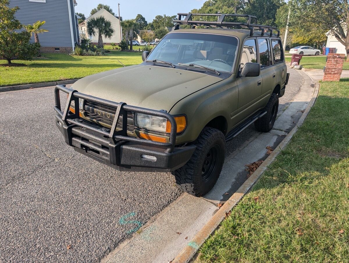 This 1991 Toyota Land Cruiser has been restored and updated with new exterior and drivetrain components. The owner has had it for 3 years and it is currently drivable and mainly used for weekend drives. The vehicle is green in color and has a clean title, with a mileage of 200100. Vehicle Details Selling 91’ FJ80. Has been a great project but time to let go. Modification/Maintenance since purchase: -Custom LineX paint job by LineX of Virginia Beach -Undercoating -New brakes -EMU suspension and steering stabilizer -Dobinsons bumpers front and rear, roof rack -New battery -Steering gearbox -All fluids changed -Replaced pretty much every seal and gasket -New radiator and hoses, AC serviced blows cold, thermostat, alternator -No rips or tears in seats, headliner sagging bit, dash cracked. |