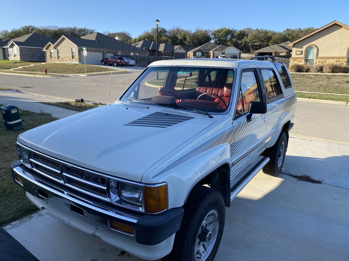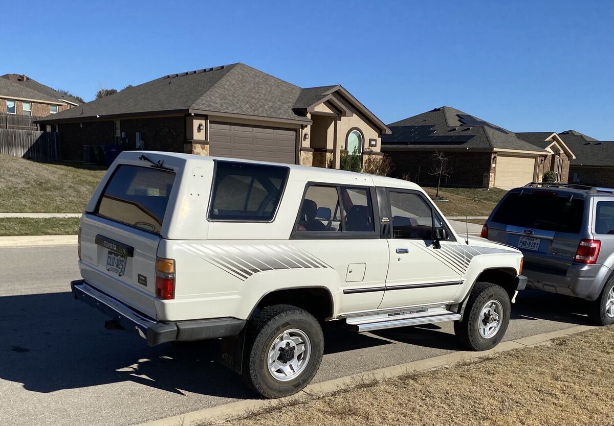 This 1987 Toyota 4Runner is an original, with the owner having it for 1 year. The vehicle, painted in a clean white color, has a mileage of 160,000 and is mainly used for weekend drives. Vehicle Details 1987 Toyota 4 Runner SR5 4WD Pros: 22 R-E, original paint, 5 speed manual trans. 160k mile, no rust on body or frame. Cons: AC blows but not cold…power windows work on/off…rear window works fine…few minor dents….missing a few interior pieces but easily available online….mostly complete overall. 512-540-1183 Mark |