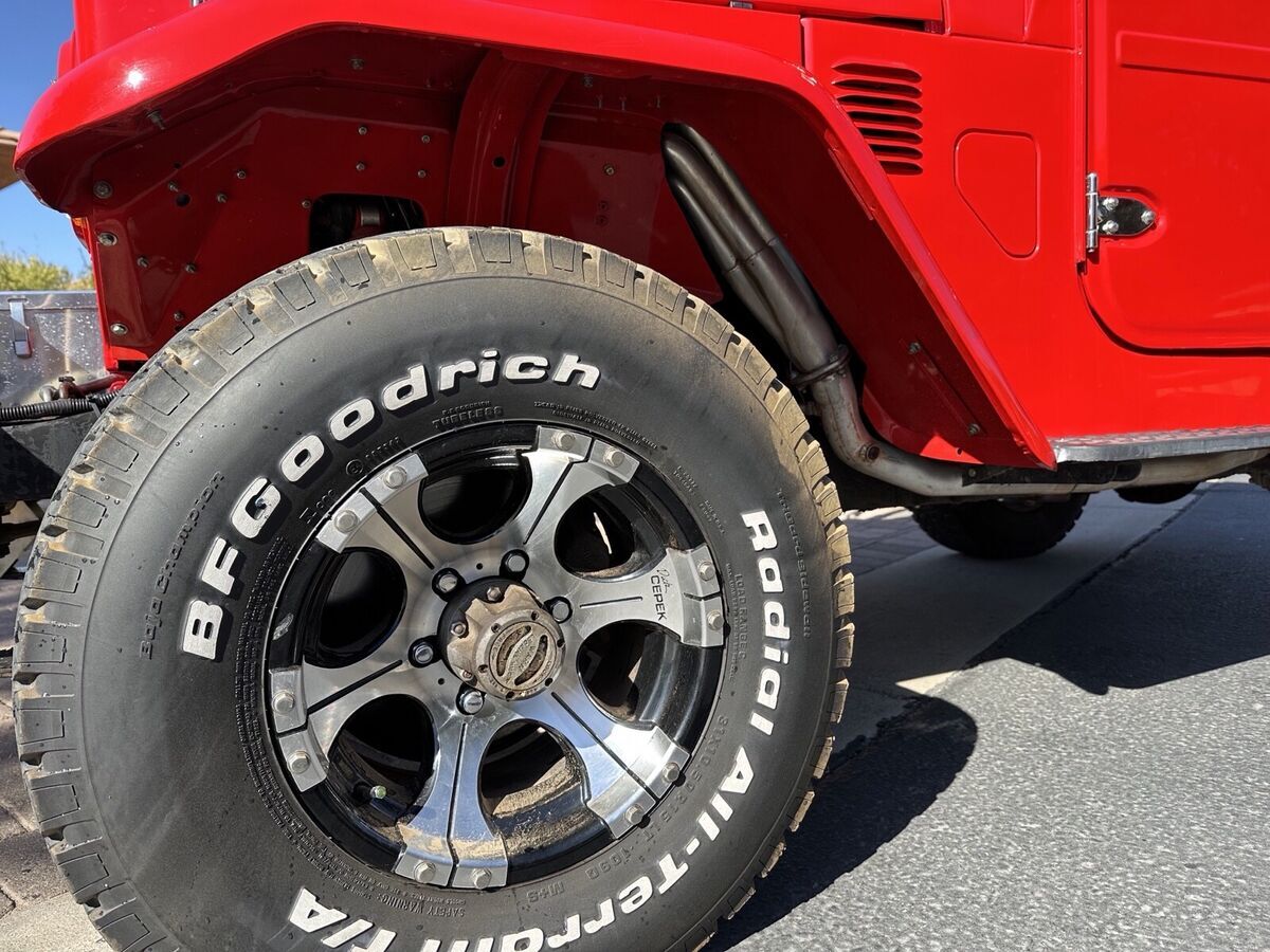 Fully customize FJ 40 is powered with a new 350 V8 LT long block. Motor comes with a three-year hundred thousand mile warranty. Also automatic transmission. It features, front and rear differential lockers, worn 8000 pound winch, Joel, optima, batteries, and a custom aluminum council. Has a fully array of customized switches and gauges with a gray interior for custom roll cage, cd, radio also features incredible sound, AM/FM cd, radio with subwoofer. Multiple PIAA lights, Exterior roof rack system. November 2024 went through a complete work over knew everything. I have receipts for it all over $20,000. One of a kind Vehicle Details 1978 Toyota FJ 40 custom Pre-runner set up New BF, good rich tires -Dick ceepek wheels New exhaust headers Five point seatbelts Comes with assortment of extra parts Ready for tea order |