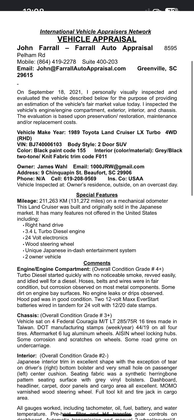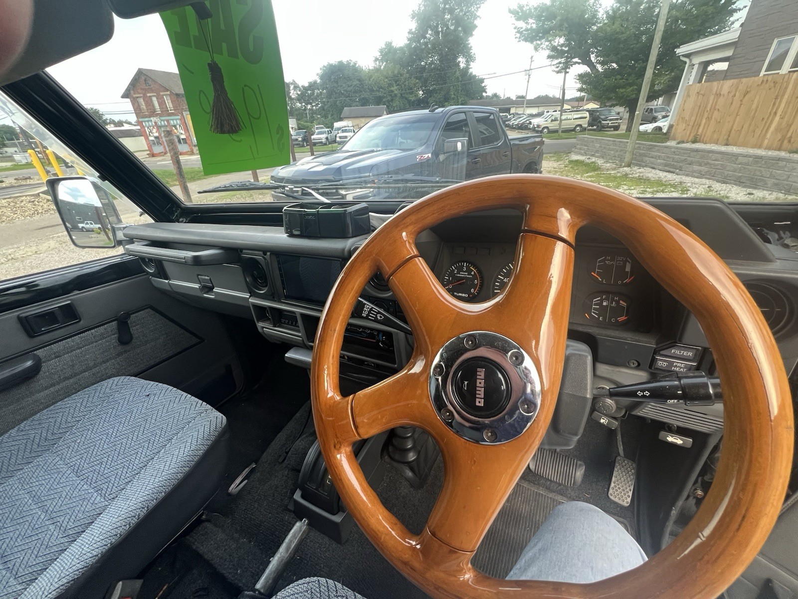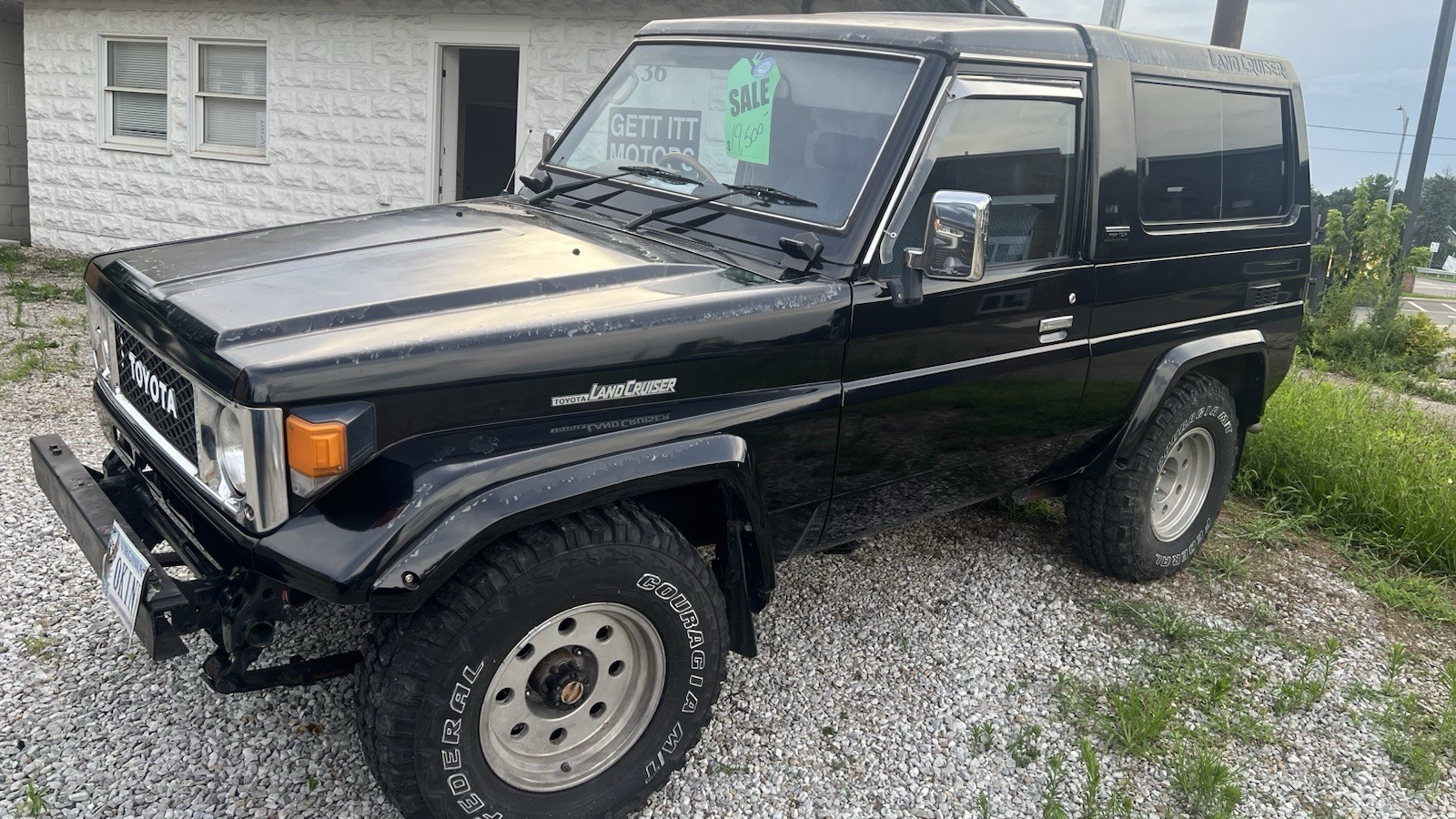 ‘89 Land Cruiser 70 Series Turbo Diesel Right Hand Drive Fires up immediately, good strong motor. Drives well, sits on 33” tires. Roof detaches, windshield folds down, great off road truck. No rust. Hood and roof and sun faded with clear peeling BJ74 - 70 Series Imported by myself in 2018 from Japan, all pertinent paperwork completedClean and Clear Virginia Title in my nameManual locking front Hubs33" tires Aftermarket Android full display headunit Mostly StockStarts immediately and drives just fine FRP Top is removable and front windshield folds down and locks. Last 3 pictures are the appraisal report valuing it at $29,500 in 2021 before the paint fade Truck is located on Union Street in Newark, Ohio Questions answered within a few hours