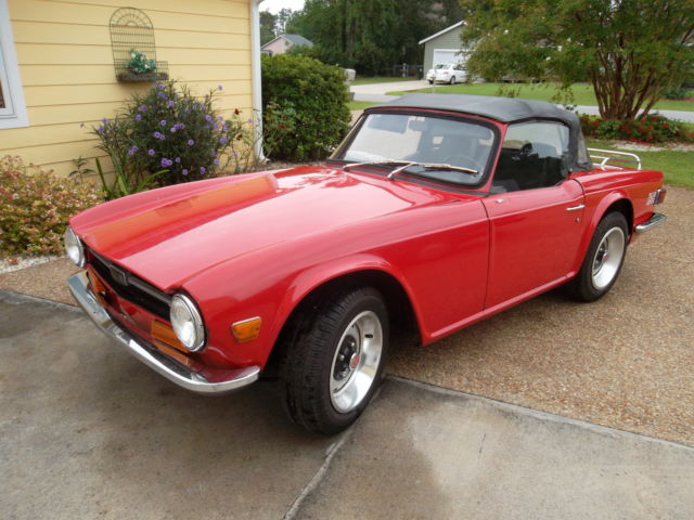 Up for auction is a 1969 TR6 in running condition. It has a rusted floor pan on the drivers side. Repair work was started and not completed. The frame is in excellent condition as you can see in the pictures. The Pirelli tires appear to be near new, t needs to be reupholstered and most of the needed material is included in the sale. The battery is new. The car starts right up and shifts flawlessly through the gears. There are several dents and dings and it will need painting at some point. You can drive it as is while you work on it. There are many items not pictured but going with the car.They are:Jack and lug wrenchCarpetDoor panelsDoor and window handles and attaching hardwareWindshield rubber seal and trimPedal padsGear shift bootOutside mirrorDoor inside and outside window sealsRadiator air ductThe bumpers are straight and the chrome is good. It has a new radiator. Take a good look at the pictures. They will answer a lot of your questions. If you need further info please feel free to call me at 252 241 3601 On Sep-14-15 at 06:42:08 PDT, eller added the following information: All the items listed and not pictured are new except the tools and mirror. |