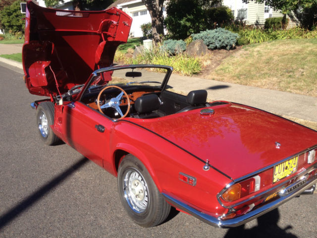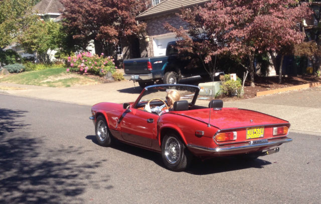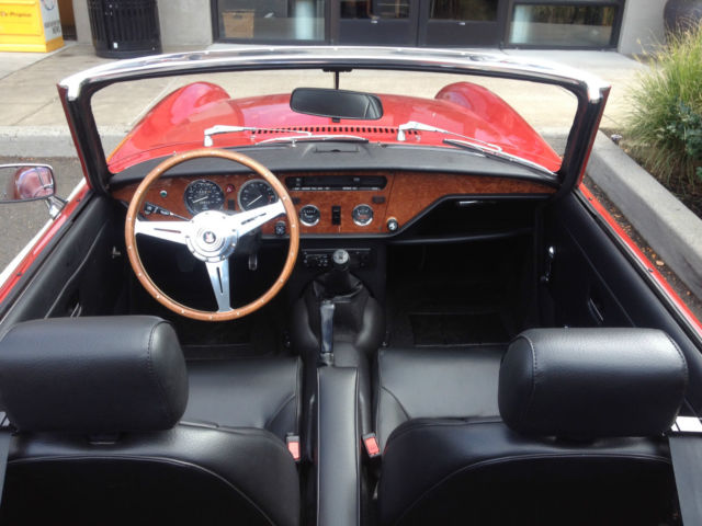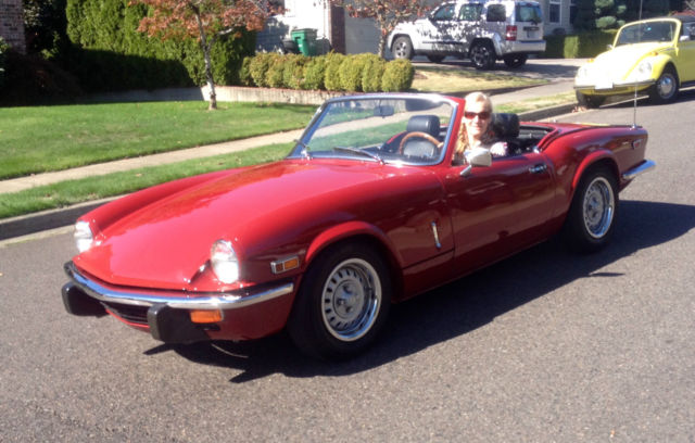 Up for sale is my 1980 Triumph Spitfire.First, ou will notice that this cardoesn'thave the ugly black bumpers which destroyedthe look of such astylishcar in the 1980. Insteadthe blackbumpersand all the welded onsteelneeded tosupportthe uglybumpers has beenremovedandreplaced with theEnglish chrome bumpers that were on all the carsexceptthose sold in the USA.In fact the new bumpers werehandmade for me in high gradepolishedstainlesssteel in England and shipped to the USAspecifically for this car. They arespotlessand should last for many years and unlike chrome if youscratchthem you will be able to buff them out. thesebumpersarefantastic.The frame was fully striped and no part was put back unless it was in first class condition. Thesuspensionsprings, hocks and bushingswereall replaced. Thedifferential was not justoverhauledit wasrebuild. The drive shafts wererebuiltand the propshaft wasreplaced. The gearbox was in good condition but the oil seals were still replaces. Theclutchwas replaced and the flywheel wasreconditioned. The brakes pads, rumsanddiscswere all replaced along with the mastercylinder.The engine was in good condition when I first got the car, ut I stillcompletelyrebuildit from the mainbearingsto therockercover. It has new 9:1compressionpistons, British parts Northwest modern profile cam, am followers, apits, uel pump, il pump, enerator, ater pump, lus a lot more.The cooling was also upgraded with a new aluminiumradiator with new hoses.The car also has a brand newinteriors. even the dash has been upgraded with beautifulbirdseye maple. Anddon'tmisslookingat thefantasticlooking steeringwheel. The gages areoriginalbut have been fitted with new chrome fittings. The radio isnew and even has a back upcamera.The car has a newconvertibletop (But has been used over the last year so look nearly new). The car is alsofittedwill atonneaucover that lookfantastic.As you can see the car got new paint.Wherethe colorisn't exactlyrightit'sclose andeveryoneseem to like the way it pops. As I havementionedthe car has been driven over the last year so the paint has seen the road and would need a little work to bring it back toshowroom new condition. The car was painted with abasecoat / clear coat on top of anepoxyprimer. The paint has never been color sanded so if youwantedto do this you could and I think you would get aterrificresult.The oldautomaticchokedcarburetor us out, s it has been replace by aWeberDCOE 40. The head that came with the car is also gone and replaced with with a new (not rebuild) new head with big valves.The car also has theoriginalwheels which I think isfantastic. They were taken off andreconditioned. but if they are not for you you can go for the aftermarket wheels sold by Moss andothers.Finally, he car has has an "improved" exhaust systeminstalled. Everyoneseemstolovethey should lowrumblysound of the new can and highercompressionpistons playing through thisexhaust. I think i must be getting old as i think its a little noisy.So tosumit up, t drives like a new car with a littleextrahorsepower and lookreallygood. not sure how much extrapowerthe car has fromstandard but it enuff to make the car feel a lot more up to date.With all of the above done you should get years of happy and fun driving but it could also go bangtomorrow. So please ask questions and only bid it you know your way around these cars andand arepreparedto keep them wellmaintained.Thanks for looking and good bidding.I reserve the right to end theauctionat any time.