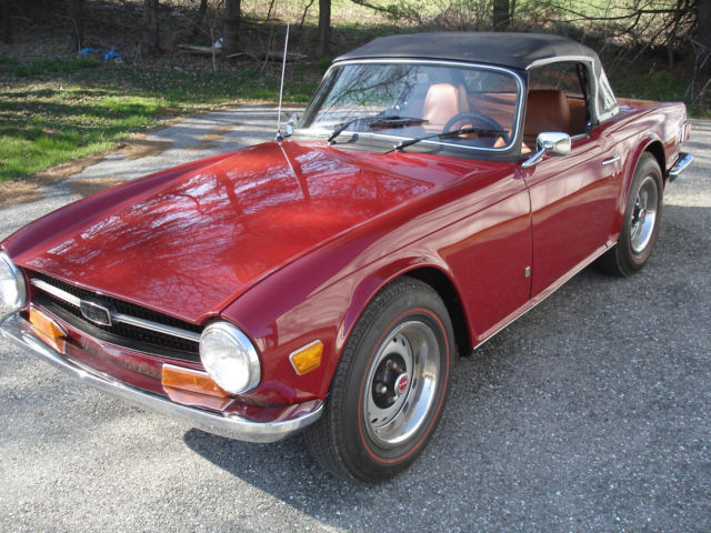 This car was cosmetically redone about 4 years ago, used very little and still looks like new. Carmine maroon exterior with new tan interior. Very straight body with very good body gaps. All rear deck seams are good with no rust issues. All panels appear to be original, including the main and trunk floors. Engine compartment is very nice and clean. Correct green hoses are present. Interior is all new, including seat covers, all panels and carpet. Dash is new as well.Trunk compartment is also very nice with new carpet and panels. New, correct reflective strip top comes complete with top boot and tonneau cover. Tires are new Michelin Red Lines. Wheels have been redone and the trim rings are new. Chrome is all original, right and left rear bumper sections have some light pitting. Exhaust includes a new stainless muffler. Frame is in great condition with no signs of rust damage or repairs. Runs and drives great. Engine has good oil pressure and does not overheat. Trans shifts easily with good synchros. This is a non-overdrive car. Overall a very nice example of the early bumper model without the big overiders. Mileage on car is unknown, probably less than 100,000, but Ebay requires a mileage figure to list the car. Car comes with a clear PA title listing the mileage as EXEMPT. No PayPal on this item. Buyer is responsible for any shipping charges and arrangements, but can help with loading. Any questions, email, or call daytime, 9 to 5, at717-244-5279.Low reserve.