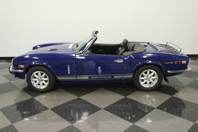 British, attractive, nimble, and meticulously restored this 1977 Triumph Spitfire is everything you want at an affordable price.You're looking at the best of Europe. Italian styling wrapped in a nimble British package and named after a famous WWII fighter plane. These Mark IV series Spitfires had arguably some of the best styling cues of the bunch with the flat rear end that was shared with larger Triumphs like the Stag. If this one seems particularly appealing to you, that's because it received a careful restoration during its lifetime to keep this droptop at its best. The Royal Blue paint has a sophisticated presence that coordinates nicely with the darker elements like the taunt black roof, fresh weatherstripping, and the Spitfire stripe on the rocker panels. Plus, it also makes the bright elements really standout such as the mirror-like bumpers, luggage rack, and the upgrade to Minilite-style wheels.The Spitfire was always about representing the plucky nature of a British sports car. That meant an interior built for function, but in true English fashion, form-fitting style was still a priority. This nature is at its best in this roadster because nearly everything was rebuilt or replaced during its full restoration. That's why the black vinyl on the seats looks the same as when this car got off the boat in 1972. The dashboard is low enough to give you a commanding view, but there's still plenty of room to hold the heater/defrost controls and the full gauge package. Plus, there were some nice upgrades added like the auxiliary power plugs, Sunpro volts gauge, and the AM/FM/CD stereo with remote and USB input. From the moment you slip behind the wheel, you know why Spitfires were legendary. The three-spoke sports steering wheel is the perfect diameter, and your right hand just naturally rests on the gearstick. This will fit you like a glove, and make you want to play hooky on every sunny day. If the weather does turn gray and wet, then just remove the new convertible boot cover and raise the black vinyl top with one hand.The 1.3-liter motor in the Spitfire is certainly small, but there's much more to this story. This lightweight powerplant has been upgraded with a Weber carb and Cannon intake. Plus, you can tell by all the stainless hoses and the overall tidy setup that there has been a lot of care that has gone into this engine bay. So this is little Spitfire knows how to get aggressive without losing its sprightly charm. In fact, the consignor was happy to drive this down an hour to our showroom. And his eagerness is exactly how these became so popular. The car barely tipped the scales but had a level of rigidity not seen on other roadsters of its day. These were built on a solid backbone chassis with lightweight metal partial unibody. This gave them a solid but nimble feeling on the backroads, and it only got better when paired with the four-speed manual transmission, fully independent suspension, and front disc brakes.This Spitfire almost seems too good to be true, but we have original warranty card, owner's manual, restoration photos, and build receipts that prove the amount of sweat equity (and money) someone invested. It's an amazing roadster that will bring you more open top joy than anything at even double the asking price. Call today!!!