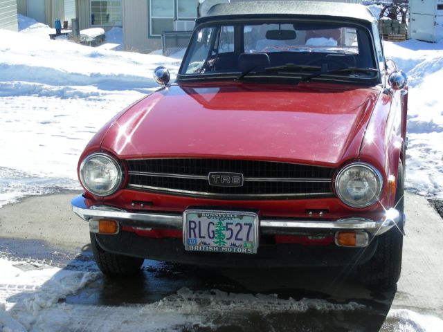 This is a rust free TR6 in very good condition. I bought this vehicle new in January 1975 in California, and have taken care of it ever since. It has the original paint, persimmon red, with mahogany colored leather interior in excellent condition and new carpets. The top is new . The exterior is in good condition and shines up very nicely. I have installed a luggage rack. It shows the normal wear that a 40+ year old car would have. The engine is unmolested other than an upgrade to electronic ignition, and dual SU carbs. It has a new muffler and does not smoke. It has chrome, after market, knock-off wire wheels and tubular rear shocks. It had a small ding on the left front fender which has been repaired. The muffler is new. It is rust free and is never driven in bad weather or in winter. The tires are Michelin red stripe radials and show some cracking. It comes with an indoor car cover and is garage kept. I am getting too old to keep it up (wash and wax) and am not driving it anymore.
